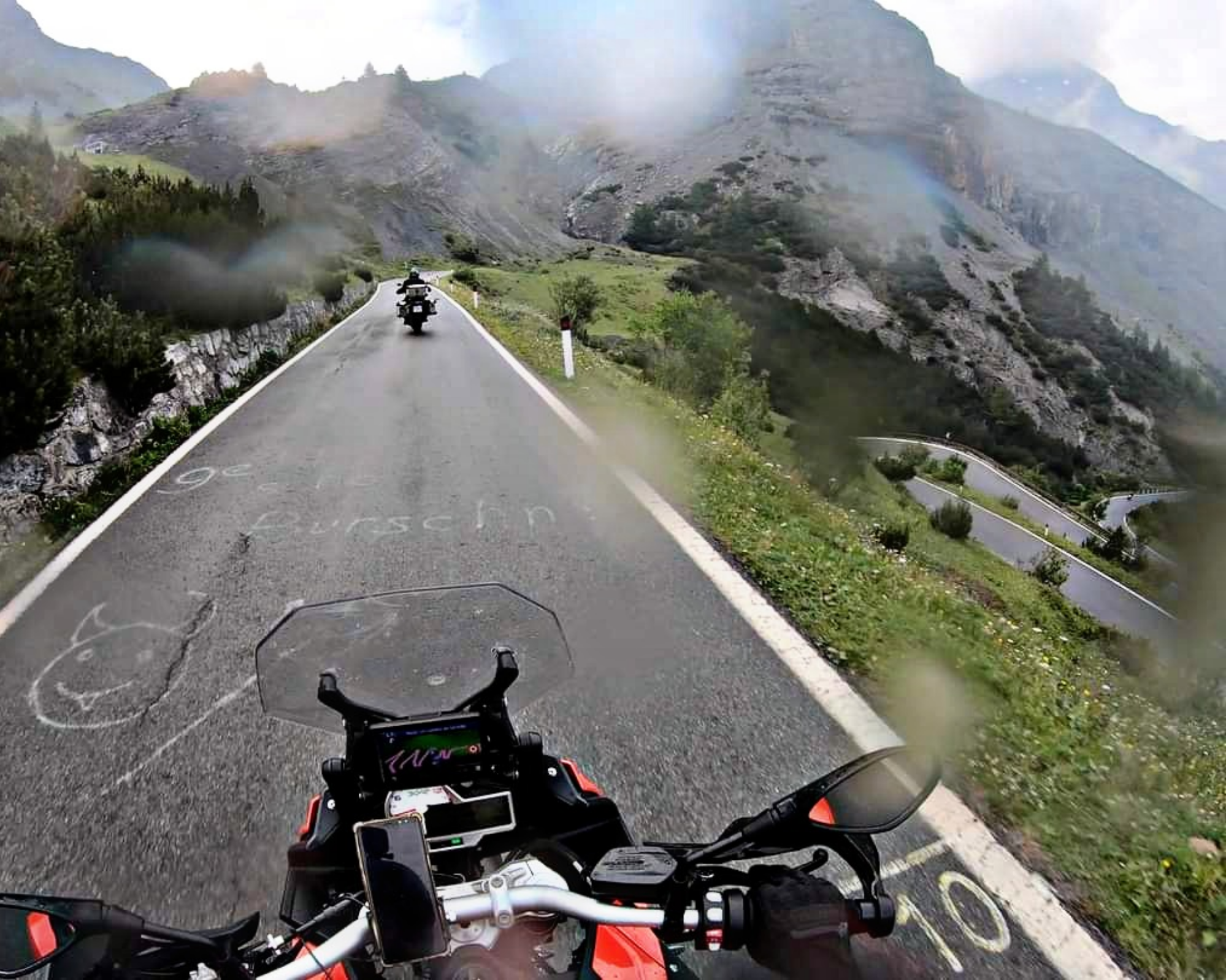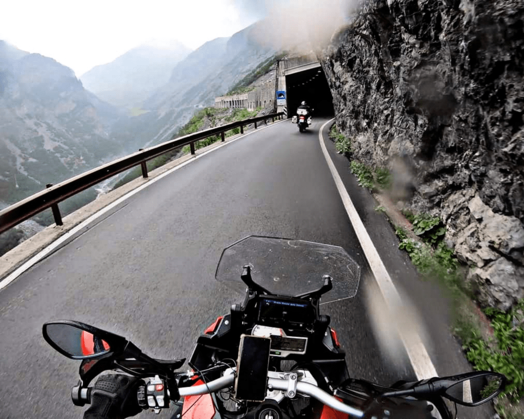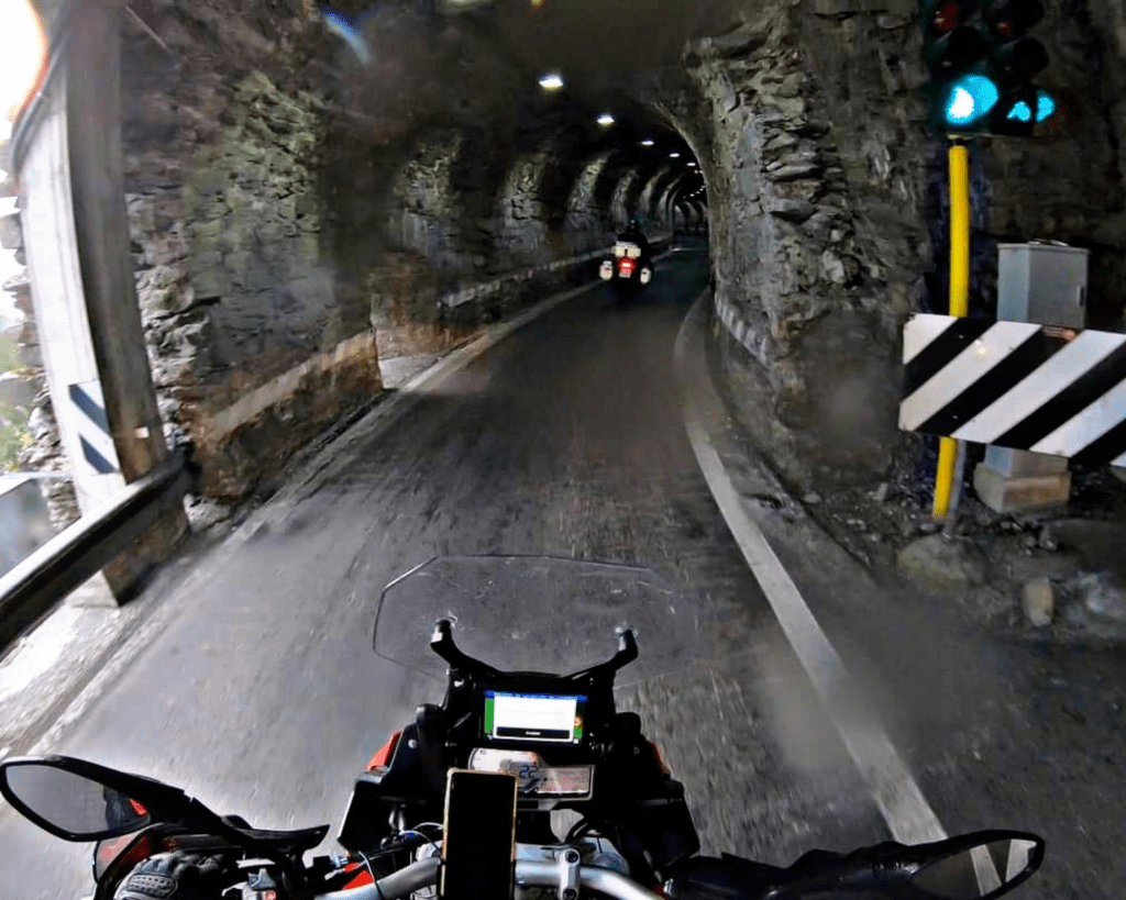 El Valle de Valtellina nos recibe con agua y niebla, pero aún así no puede ocultar su belleza. Túneles y galerías excavadas en la montaña, nos abren paso con una pendiente continua.