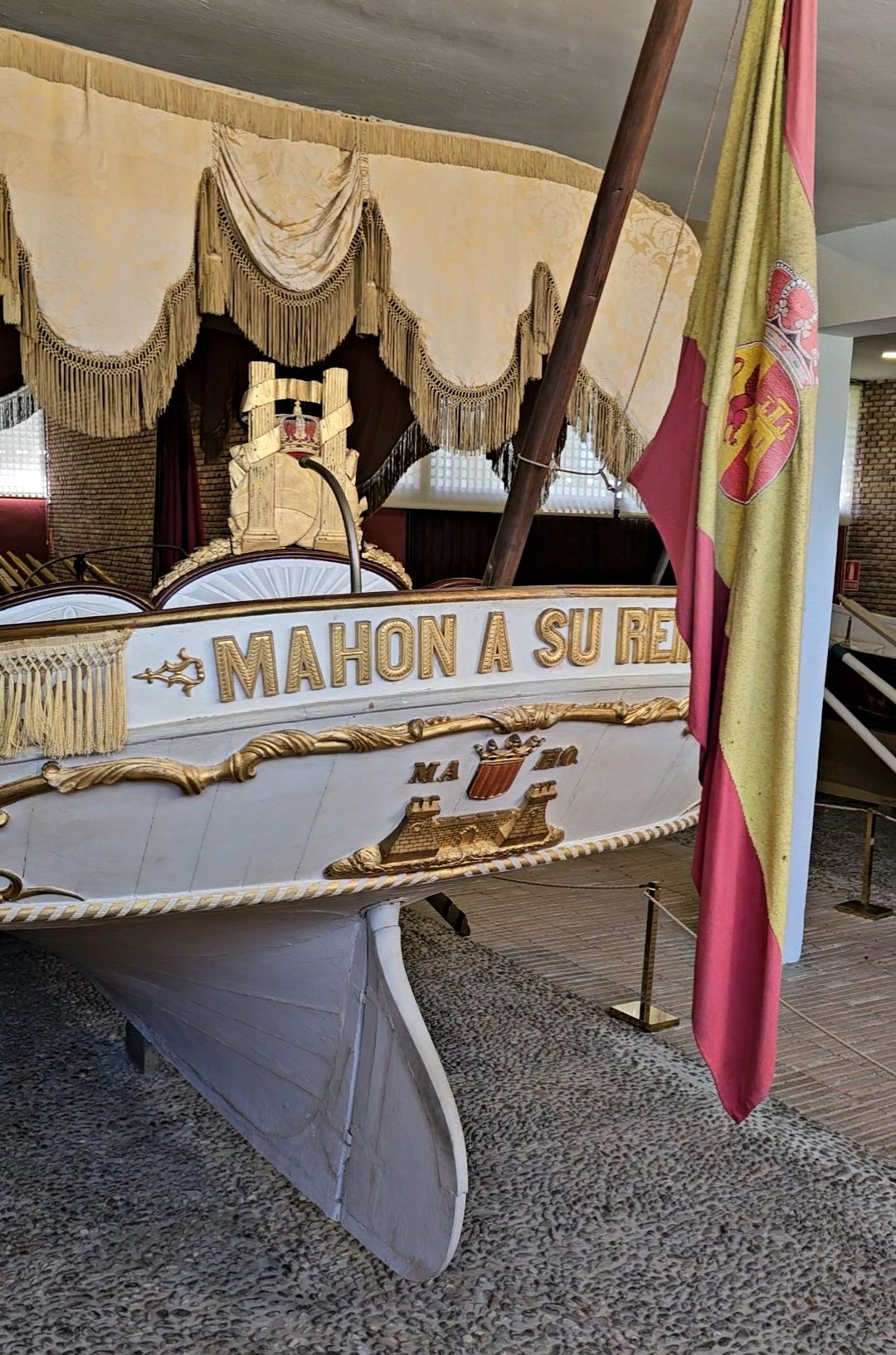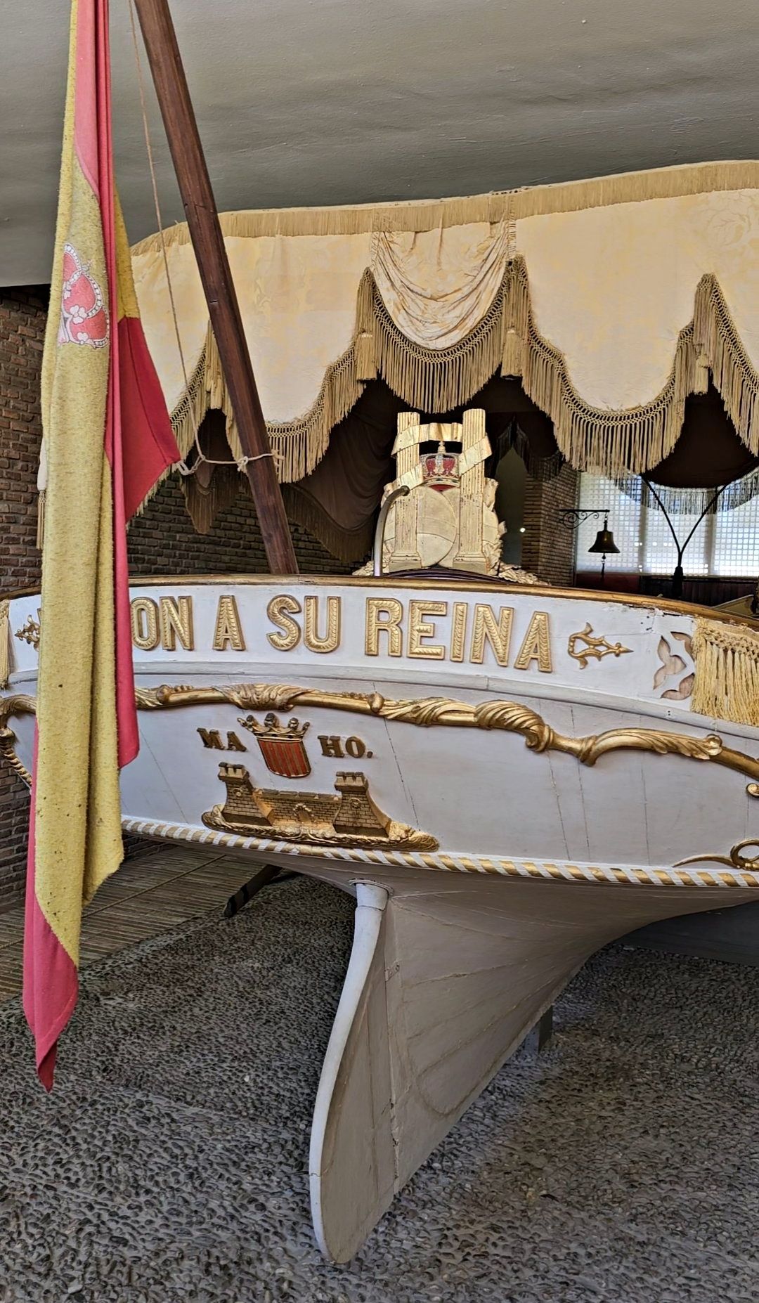 La falúa de Isabel II es una embarcación de cabotaje de José Tuduri de la Torre, dedicada por «MAHON A SU REINA», con el escudo de la ciudad en la parte trasera. Tiene catorce remos, y el pabellón y el asiento están decorados con damasco amarillo. El respaldo del asiento presenta los Dos Mundos con las Columnas de Hércules y el Plus Ultra, bajo una corona real.