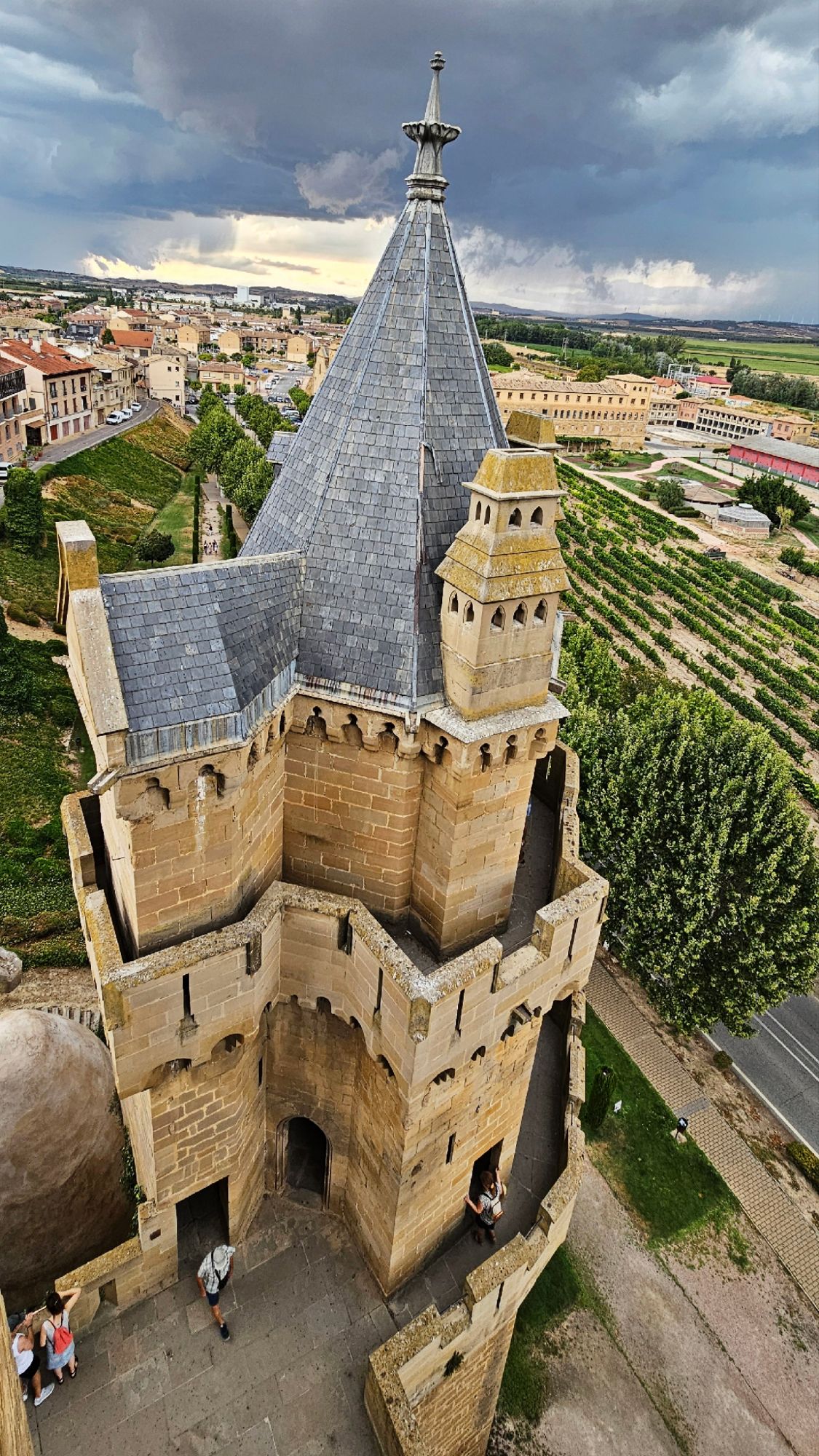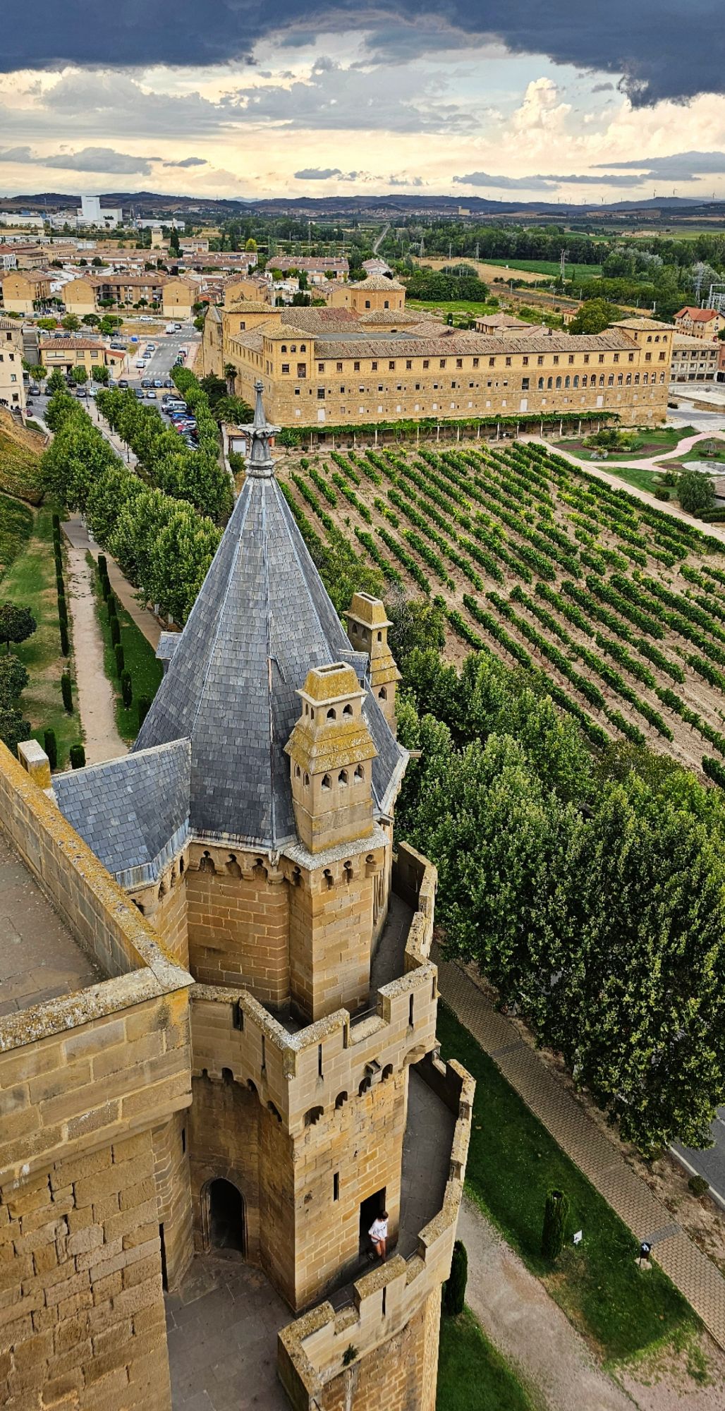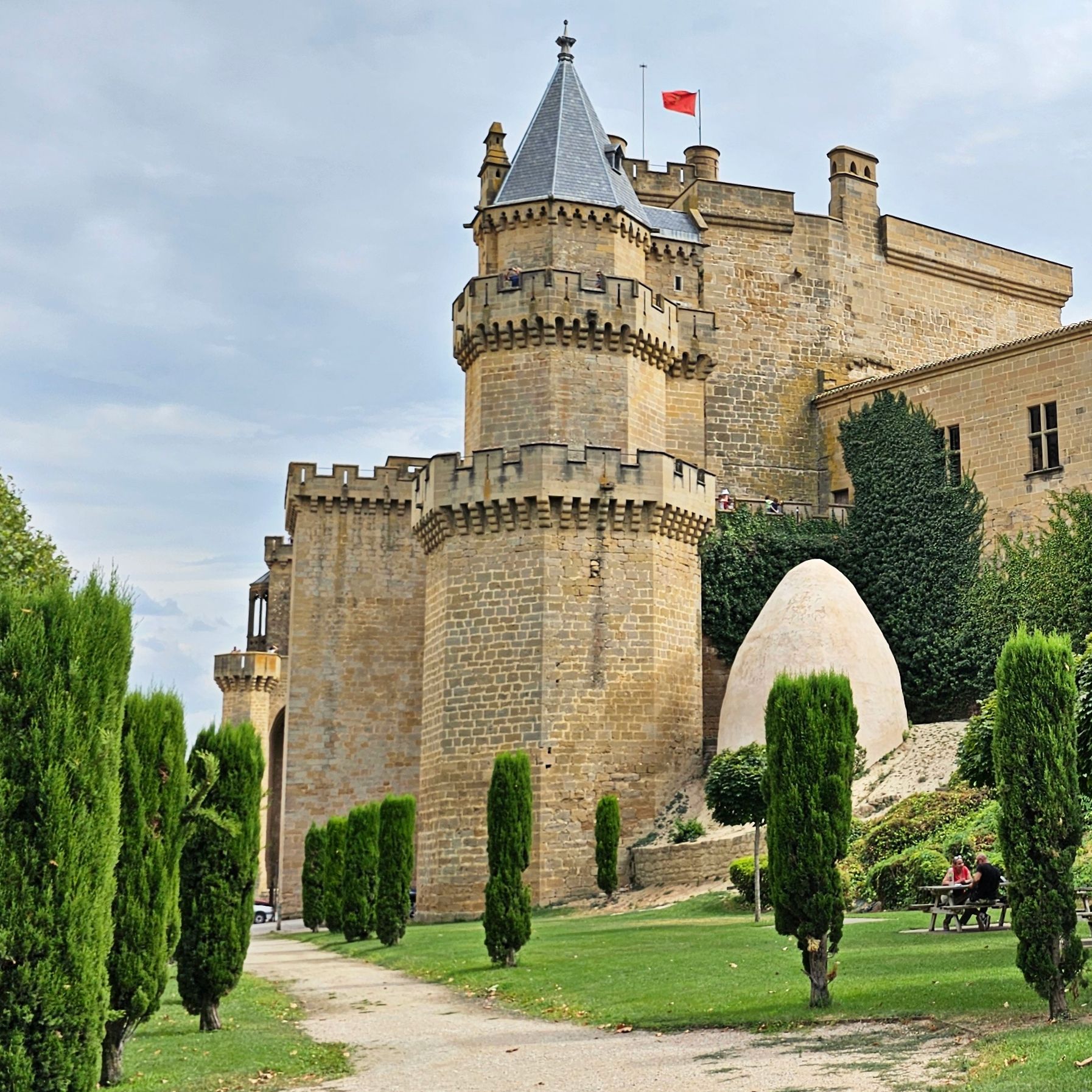 El Castillo de Olite fue la residencia de los reyes navarros, especialmente durante el reinado de Carlos III «El Noble». Se construyó en los siglos XIII y XIV, y lo que lo hace especial no es solo su historia, sino la sensación de estar en un verdadero laberinto medieval. Cuenta con torres puntiagudas, patios rodeados de jardines y terrazas con vistas espectaculares a los campos de viñedos que se extienden hasta el horizonte.