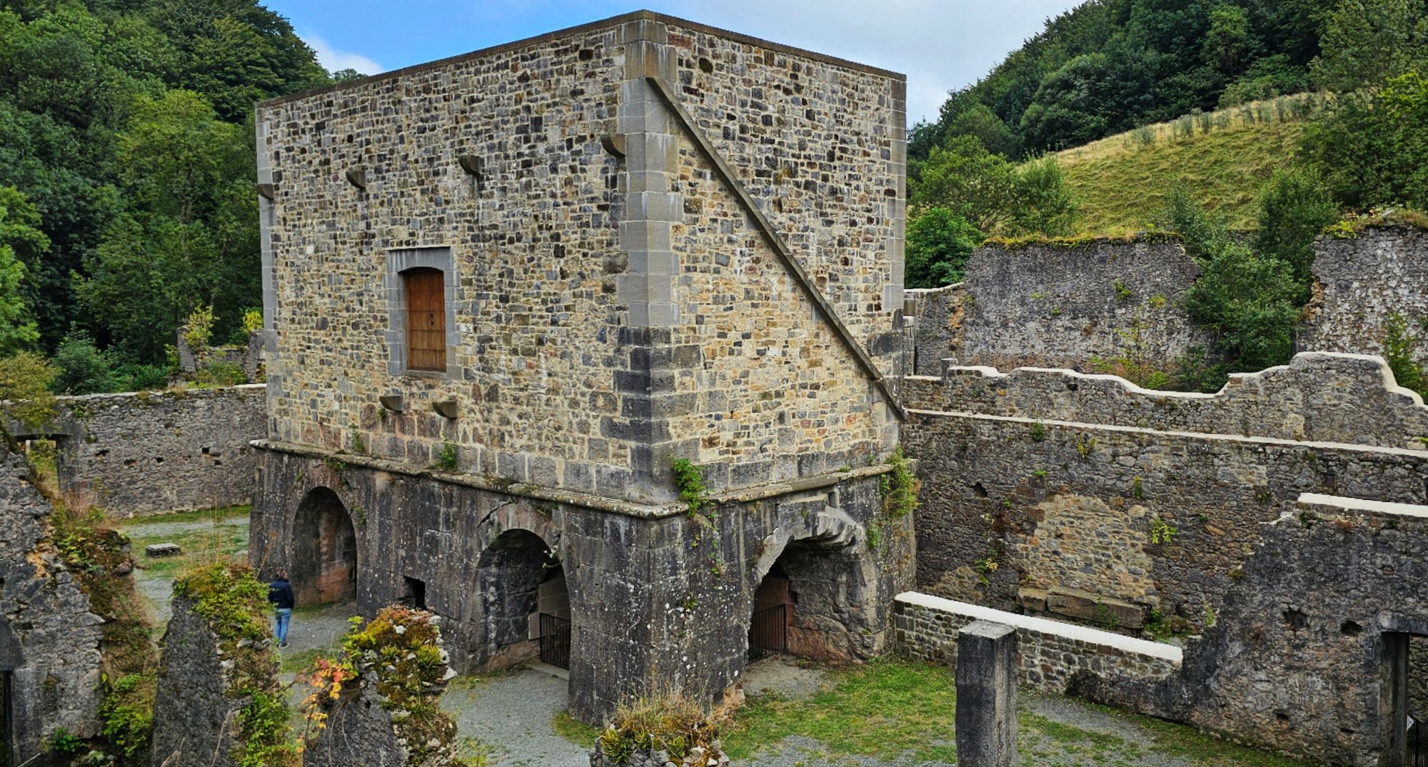 Si dispones de tiempo, no te pierdas la subida al tercer nivel de la fábrica, donde las ruinas se fusionan con la naturaleza y un arroyo corre entre los muros. Es un rincón que parece sacado de una película y que te regalará unas vistas impresionantes de los Pirineos y de la propia fábrica desde las alturas.
