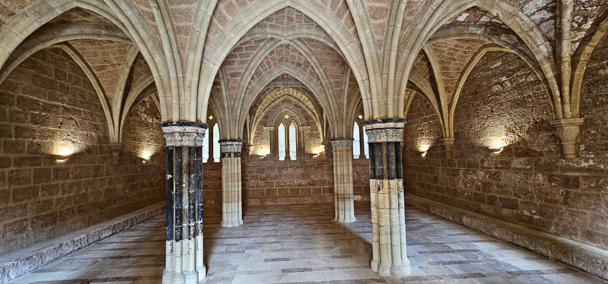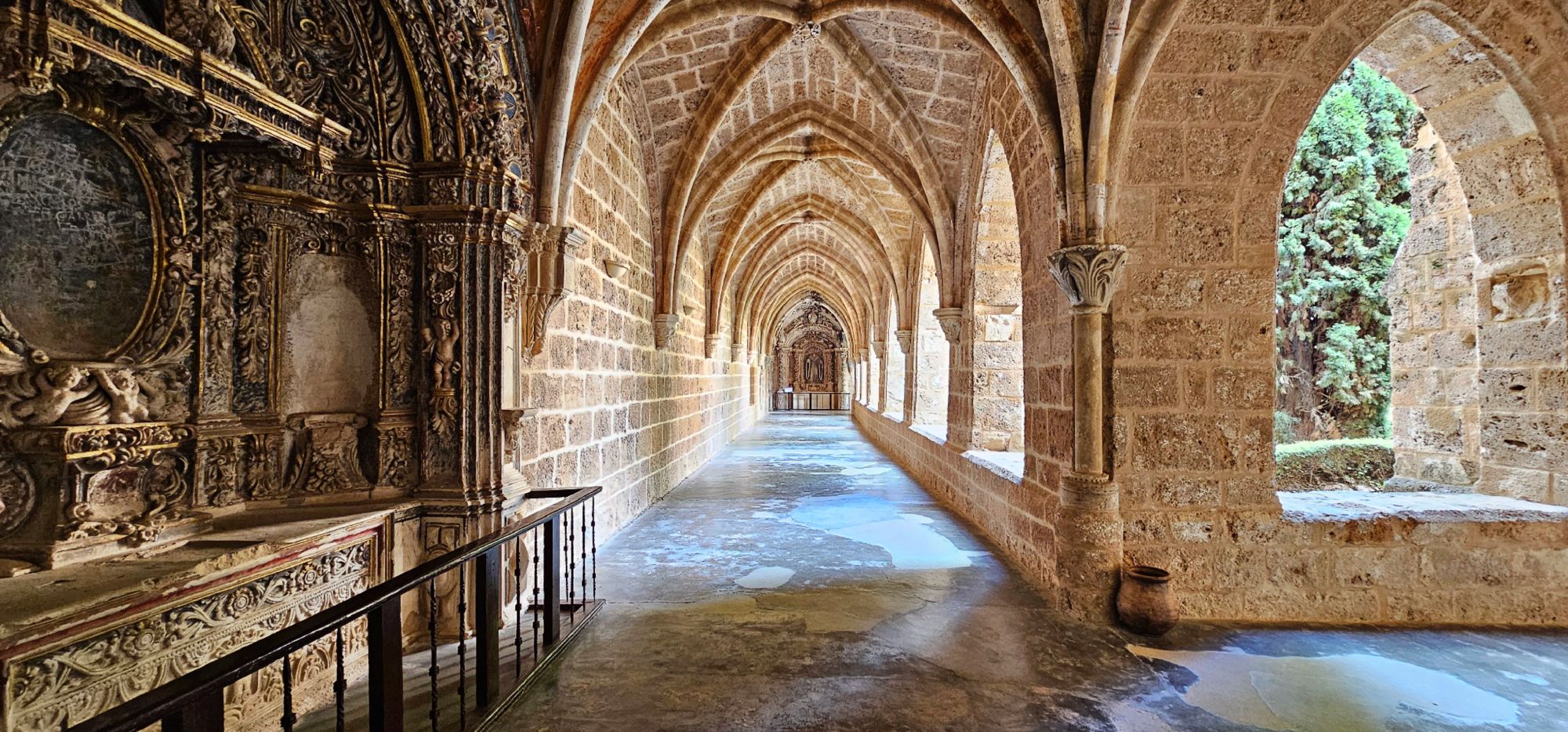 En el recorrido por la zona monumental descubrirán el antiguo claustro, alrededor del cual se encuentran las diferentes estancias monacales, la sala capitular, la iglesia abacial, la bodega y cillería, la antigua cocina, el refectorio y el calefactorio. Un conjunto monumental que aglutina diferentes estilos: del gótico al barroco, pasando por el mudéjar y el renacentista.