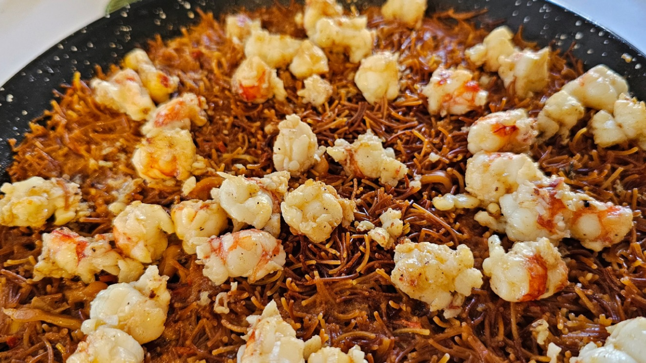 Si tuviera que elegir un plato estrella en O Triskel, sin duda sería su fideuá de marisco. He probado muchas fideuás en diferentes lugares, pero esta es, sin exagerar, una de las más exquisitas que he degustado. Los fideos están cocinados en su punto perfecto, absorbiendo todo el sabor del caldo de marisco, y la combinación de mariscos frescos le da un toque insuperable. Cada bocado es un viaje directo al mar, con una intensidad y equilibrio de sabores difícil de encontrar. Si visitas O Triskel, no puedes dejar de probarla.