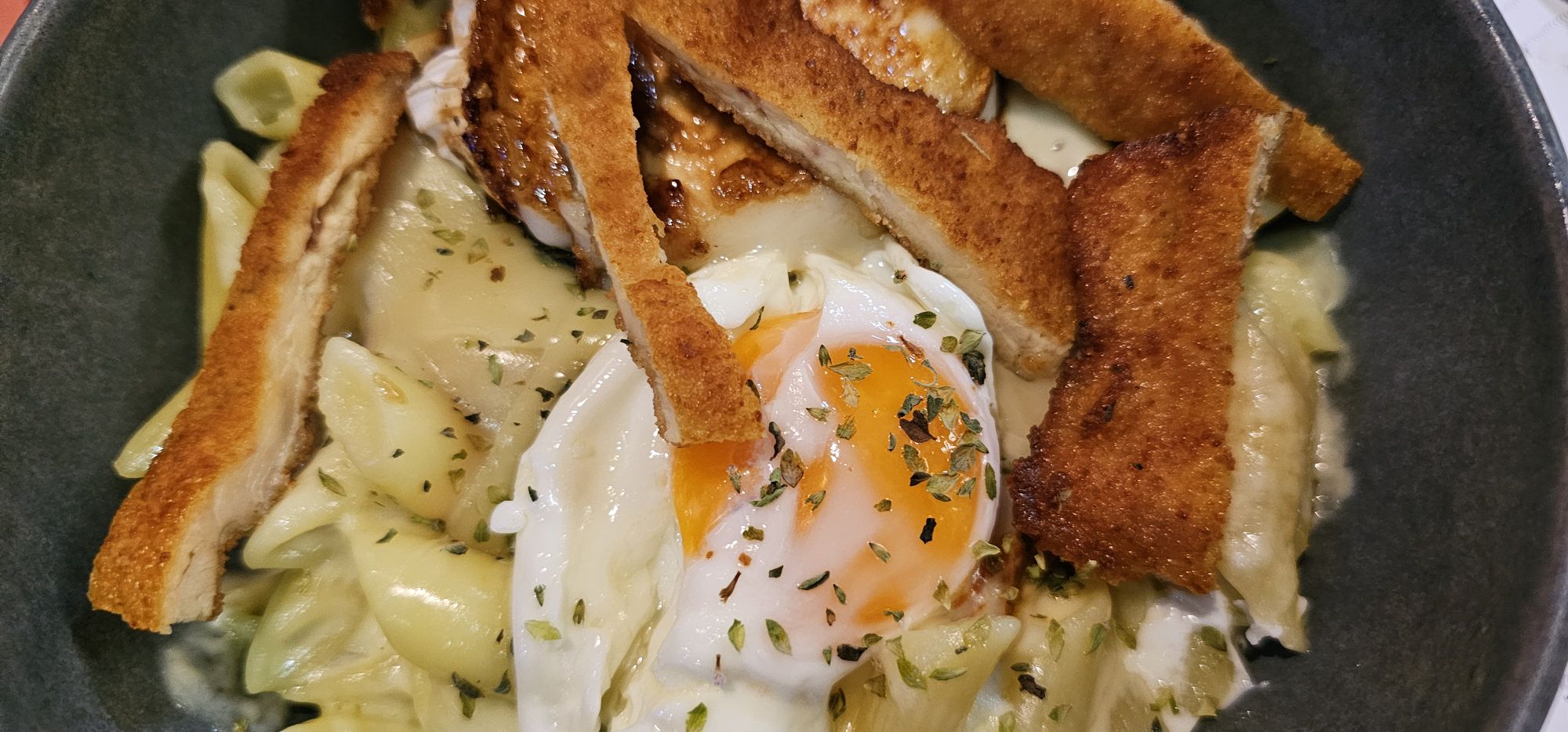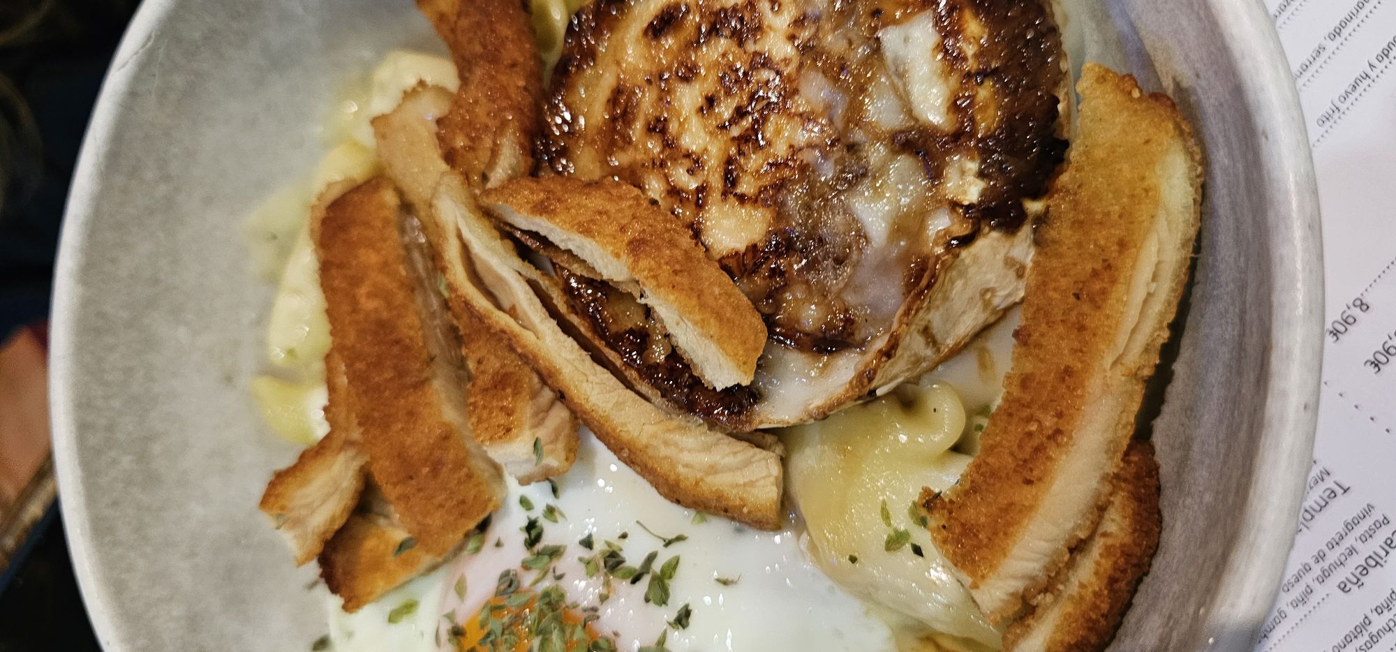 Ubicado en la Rua Ventura Misa, en pleno casco antiguo, este local rompe con lo habitual en la zona. En lugar de mariscos y pescados, aquí el protagonista es el pollo: empanado, relleno, en lasaña, en croquetas… ¡y todo delicioso!