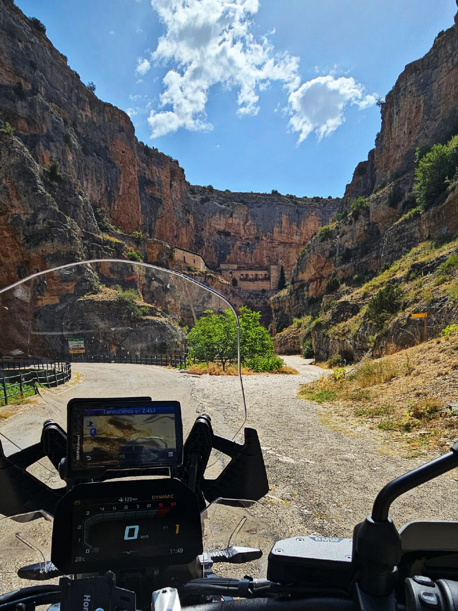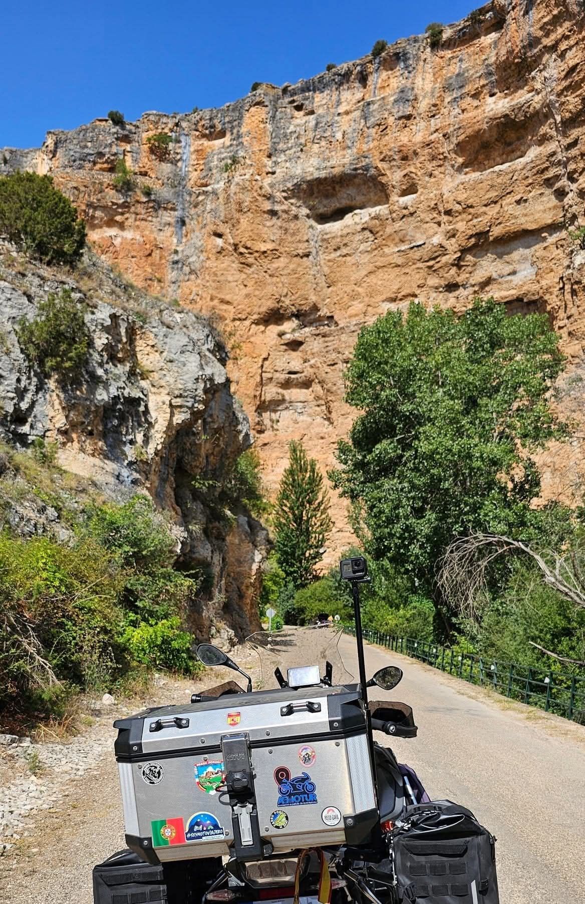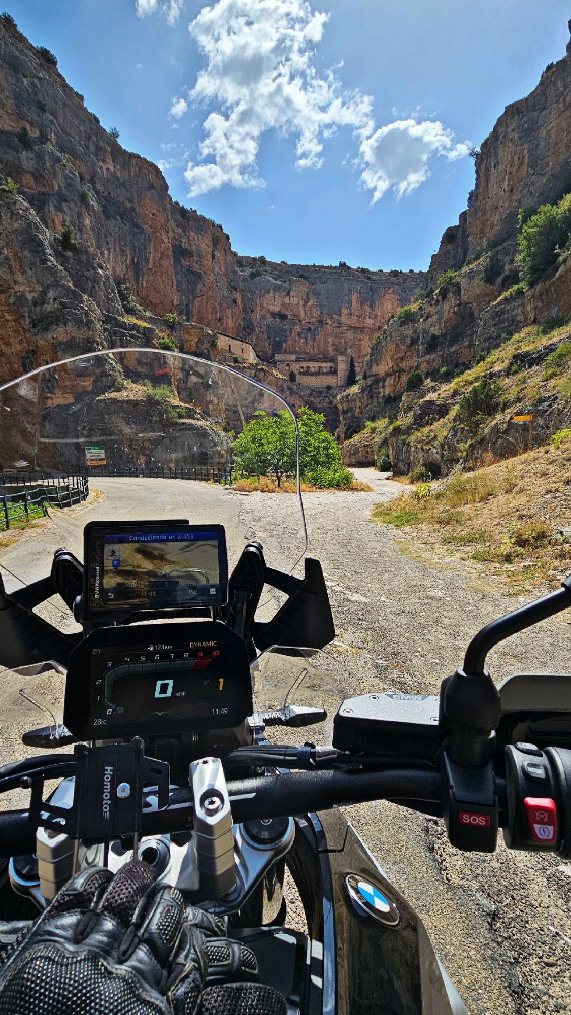 En moto es un placer total: curvas suaves, asfalto en buen estado y un entorno que impresiona. La carretera bordea el río y se adentra poco a poco en un mundo donde el paisaje lo es todo. Hay zonas donde la vegetación lo cubre todo, y otras donde el cañón se abre de golpe, dejándote sin palabras.