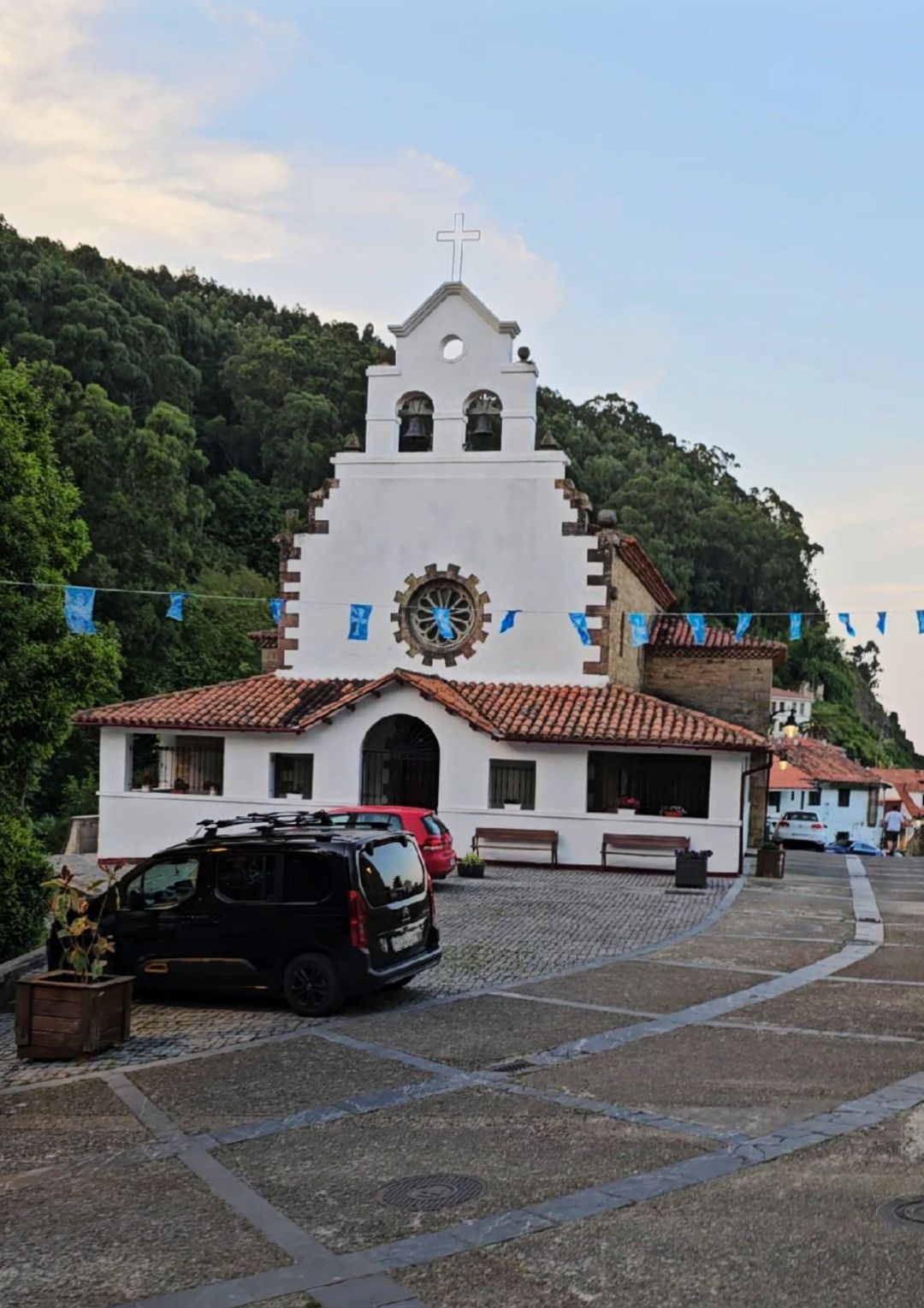 Pequeña y humilde, como el propio pueblo. La iglesia de San Miguel se encuentra en lo alto, con una bonita vista al puerto y un entorno de calma rural.
