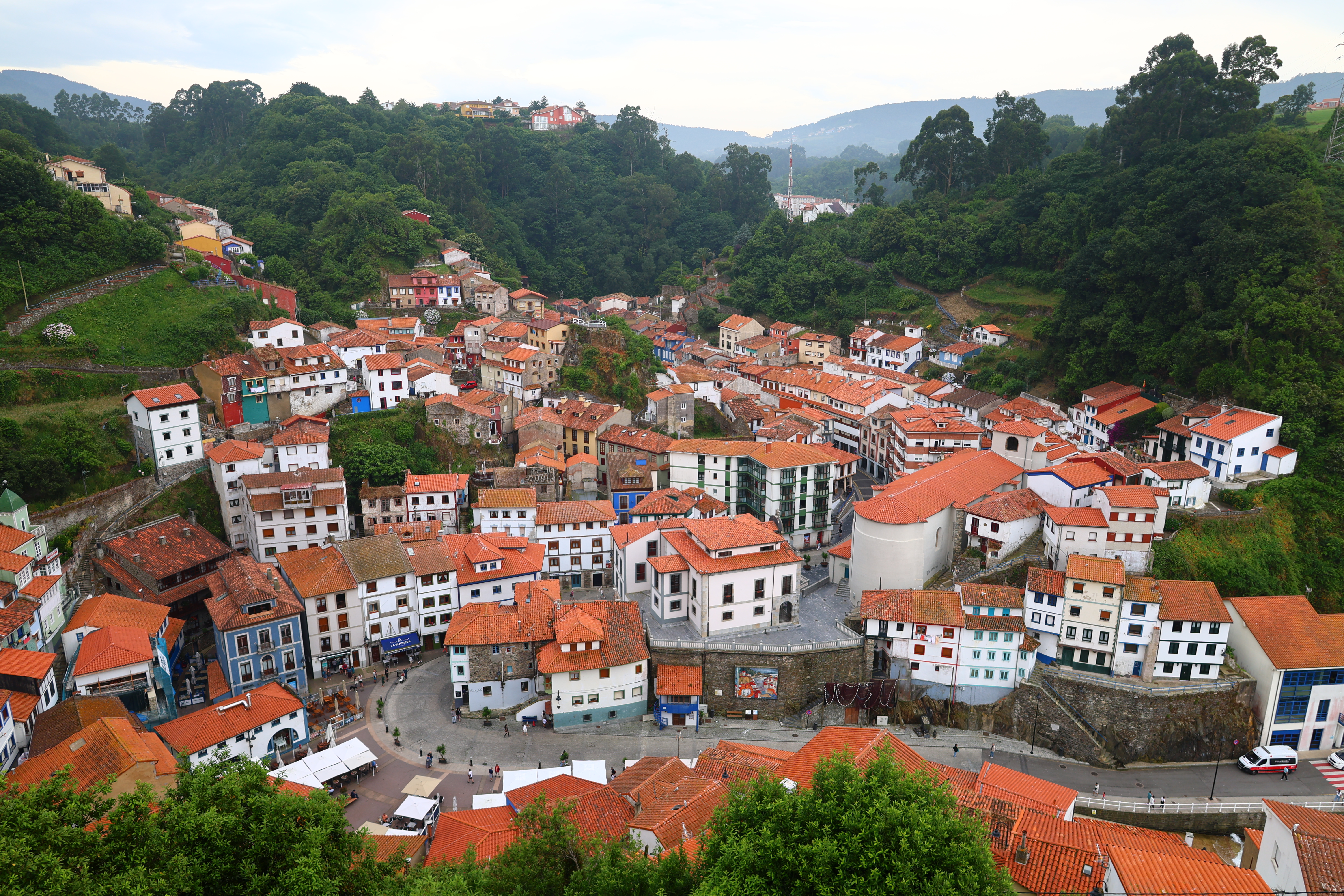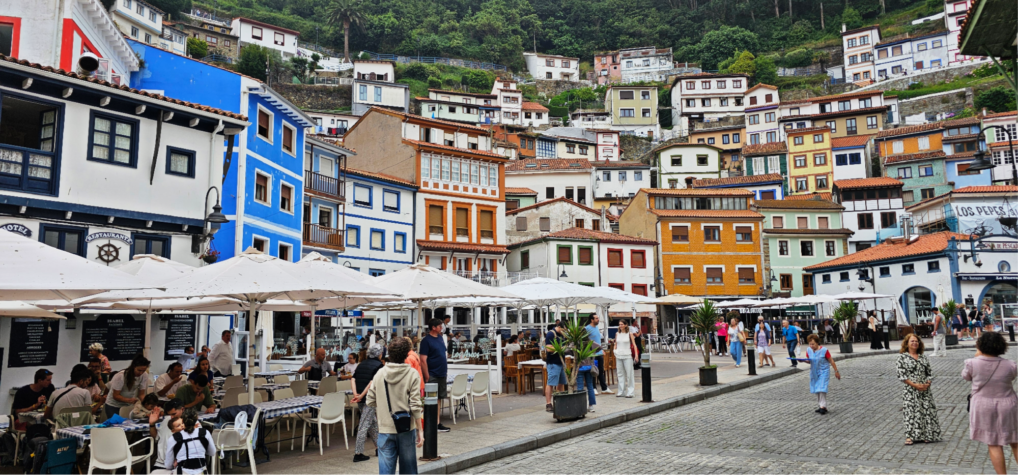Las casas, encaramadas unas sobre otras, parecen desafiar la gravedad y rendirse solo al arte. Sus fachadas de colores vivos trepan la ladera formando un anfiteatro natural que abraza el puerto, donde los barcos descansan como bestias mansas tras faenar en las aguas bravas del norte. La vida aquí se despliega en vertical, desde la plaza hasta las últimas terrazas, donde los tejados tocan el cielo y las gaviotas juegan con el viento.