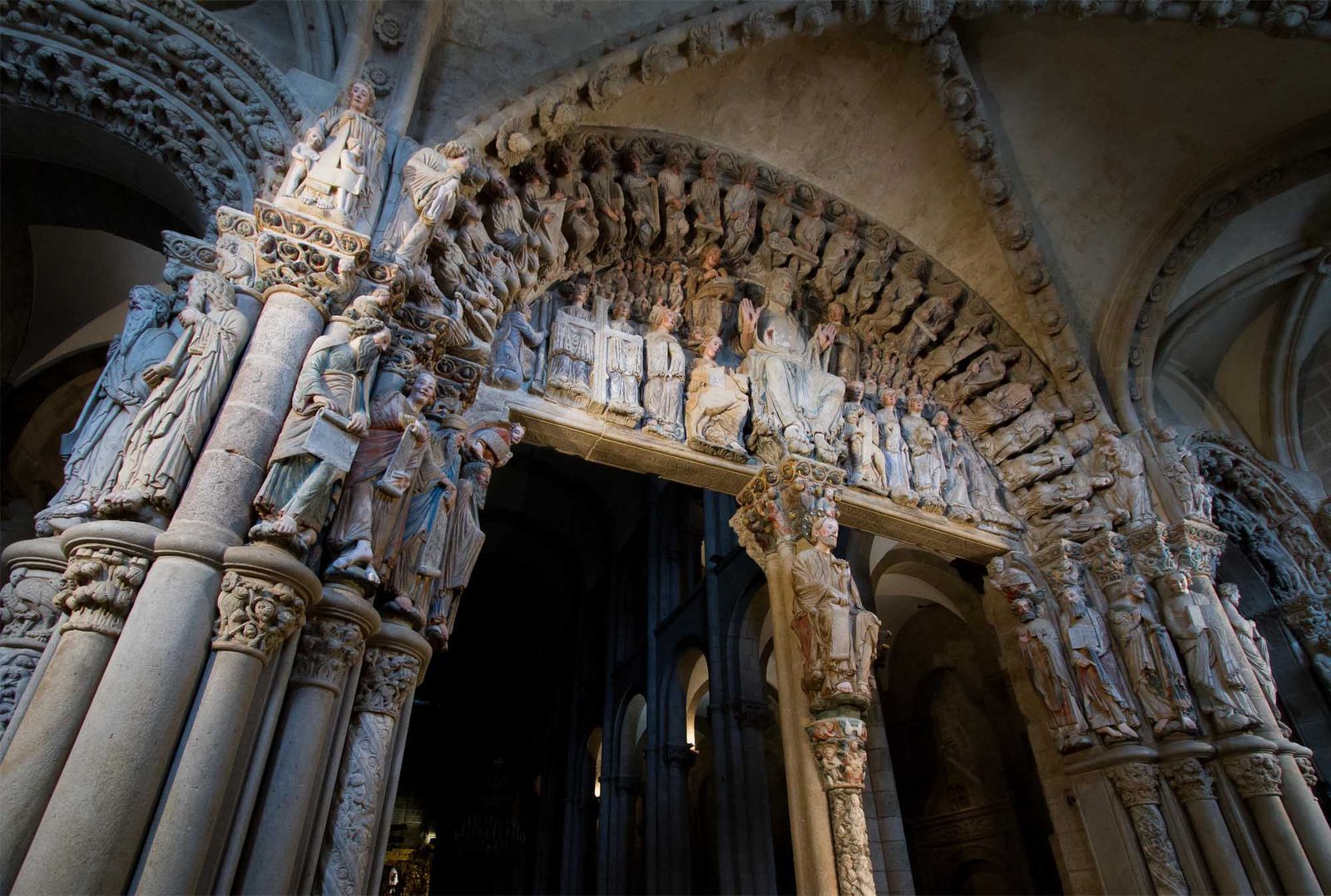 Obra maestra de Maestro Mateo, es un umbral entre lo humano y lo eterno. Allí, las esculturas parecen respirar, sus miradas sostienen la tuya, y cada figura parece susurrar un fragmento de eternidad. No es solo un portal, es una entrada al misterio.