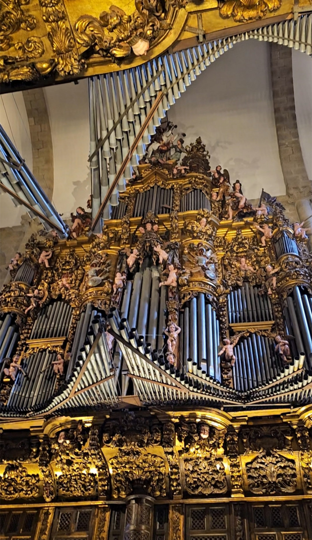 Al caminar hacia dentro, las columnas se elevan como árboles milenarios. El silencio se vuelve música. Si levantas la vista, los órganos barrocos cuelgan suspendidos, como naves que esperan zarpar en un mar de notas.