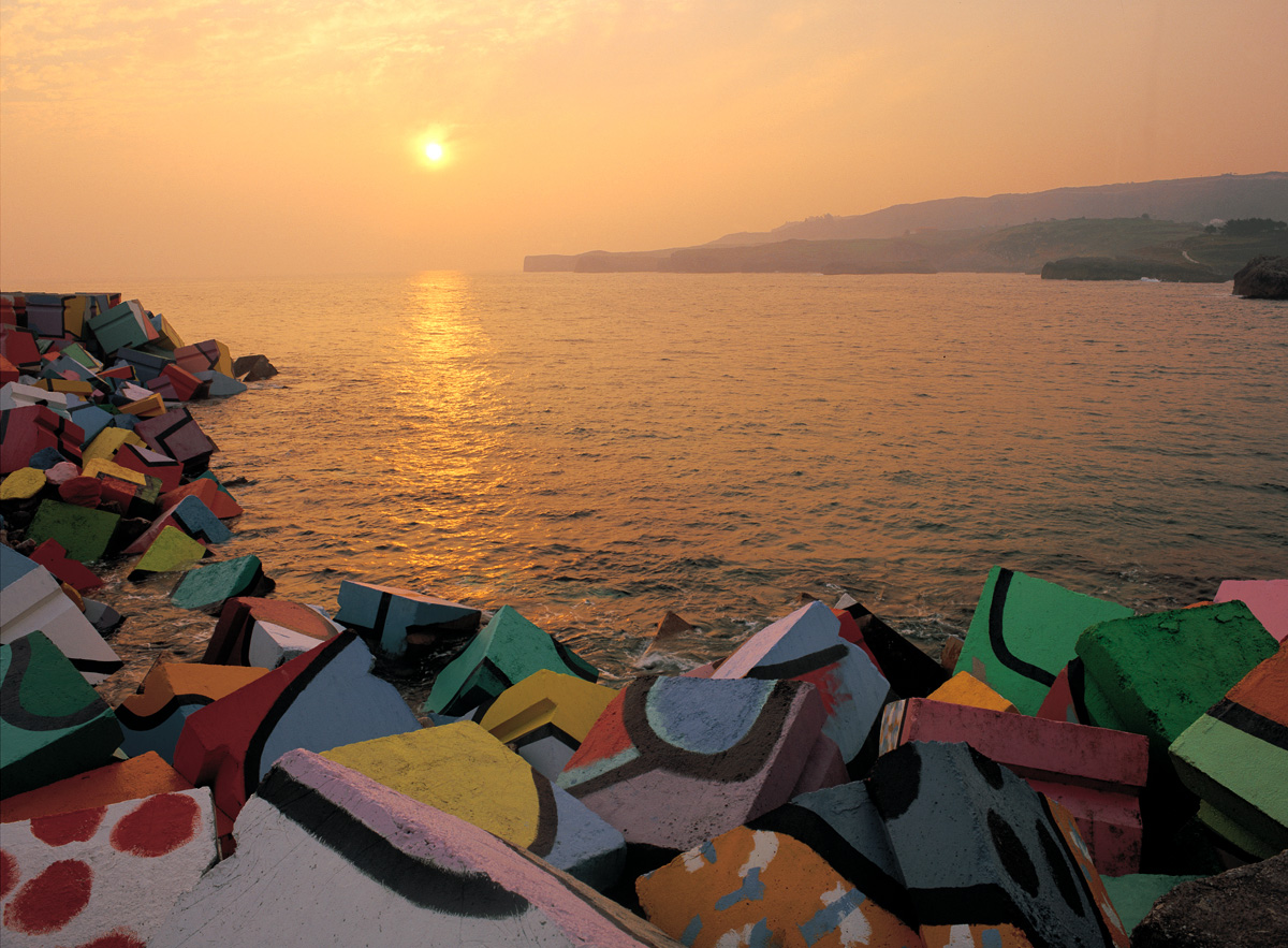 En el puerto de Llanes, las obras de Agustín Ibarrola convierten los bloques de hormigón en arte colorido. Una mezcla entre paisaje, historia y arte urbano.