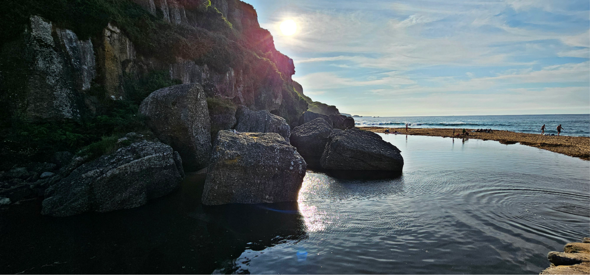 Llegué al atardecer, ese momento suspendido donde el día se deja ir sin que nadie lo apure. El sol comenzaba su descenso, tiñendo de cobre las rocas y encendiendo la arena con reflejos dorados. Todo era luz lenta y aire templado. En esta playa, los primeros rayos del sol y los últimos parecen tener una cita con la tierra. Y uno, testigo afortunado, solo puede sentarse a mirar.