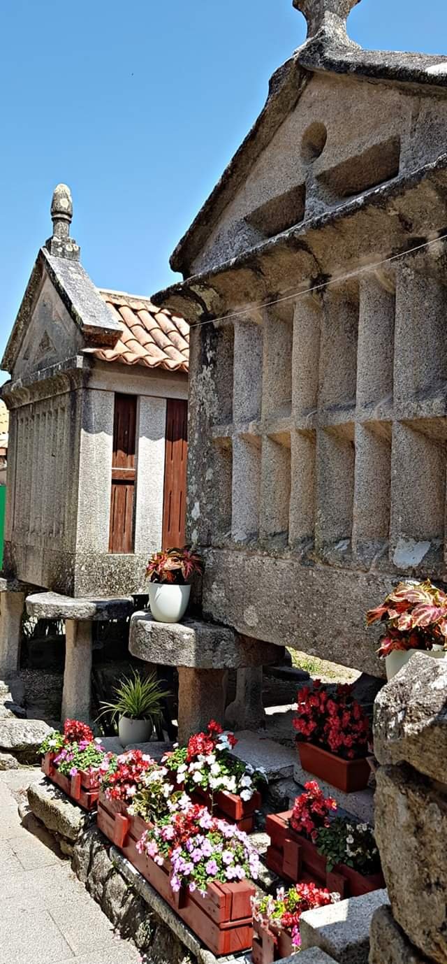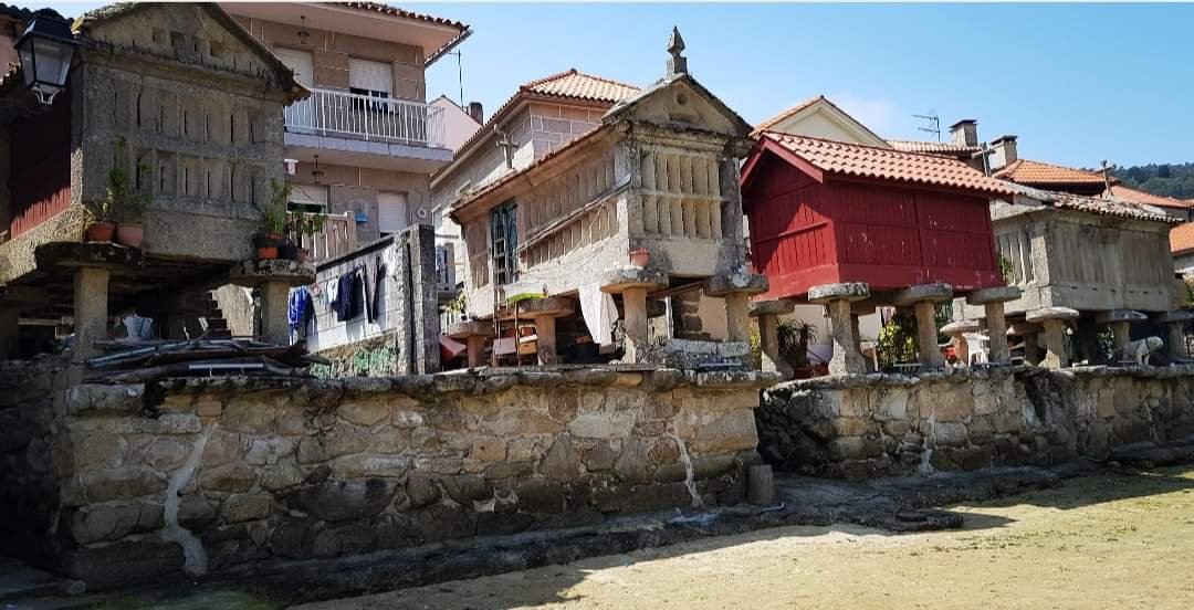 - Los hórreos y cruceiros: auténticos símbolos del pueblo, que acompañan cada rincón y dibujan su paisaje más característico.