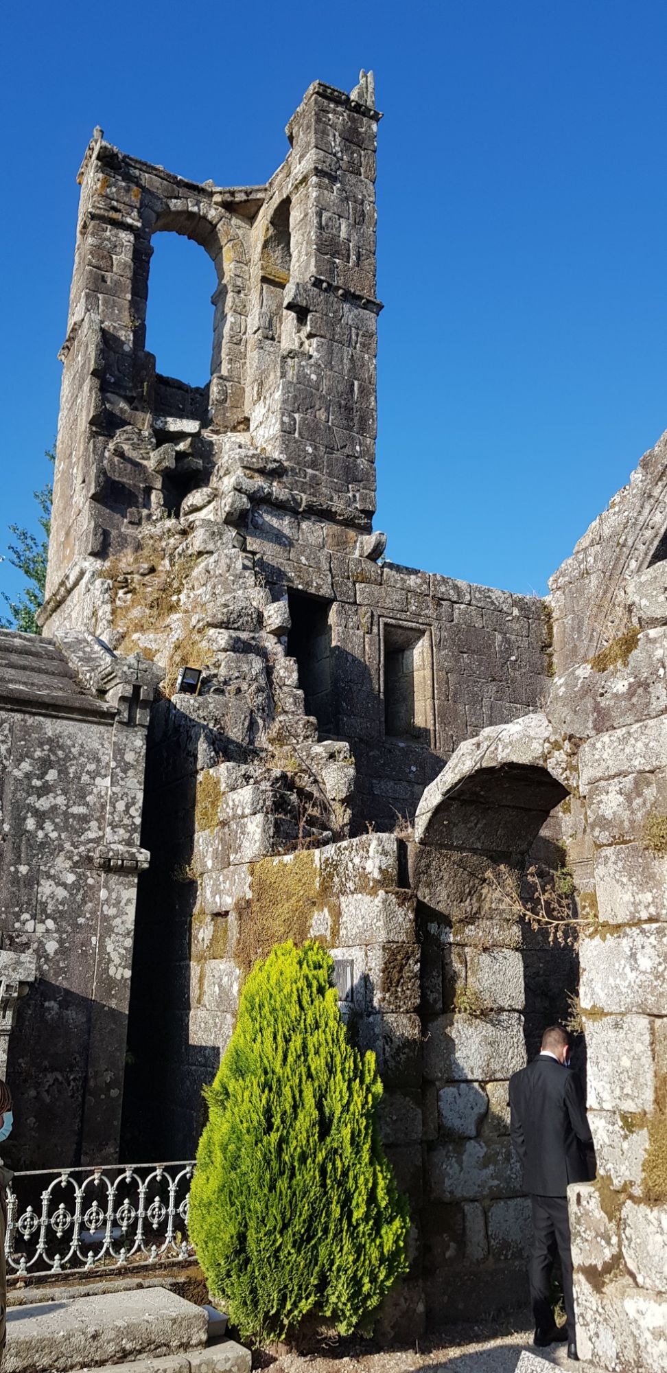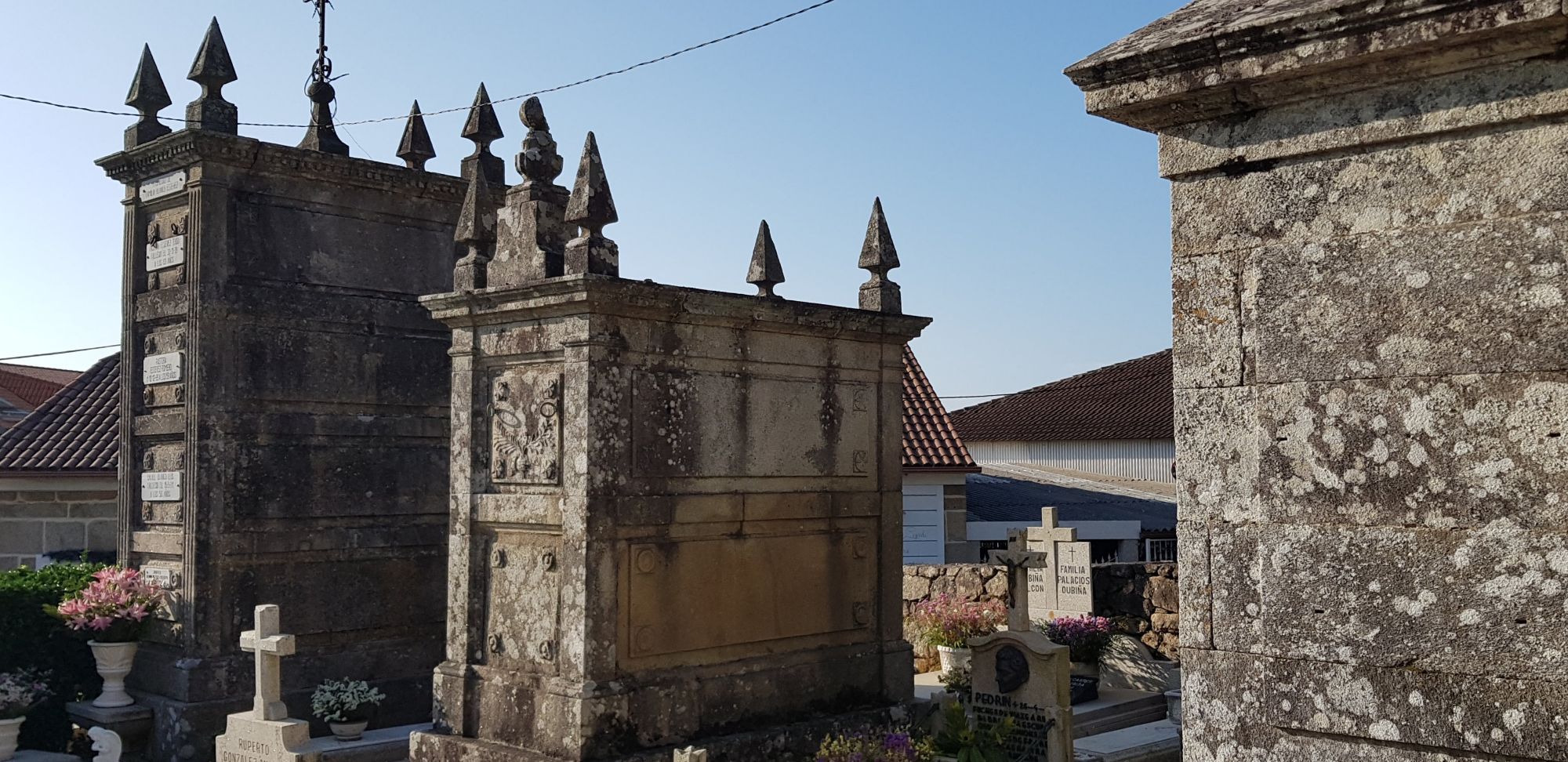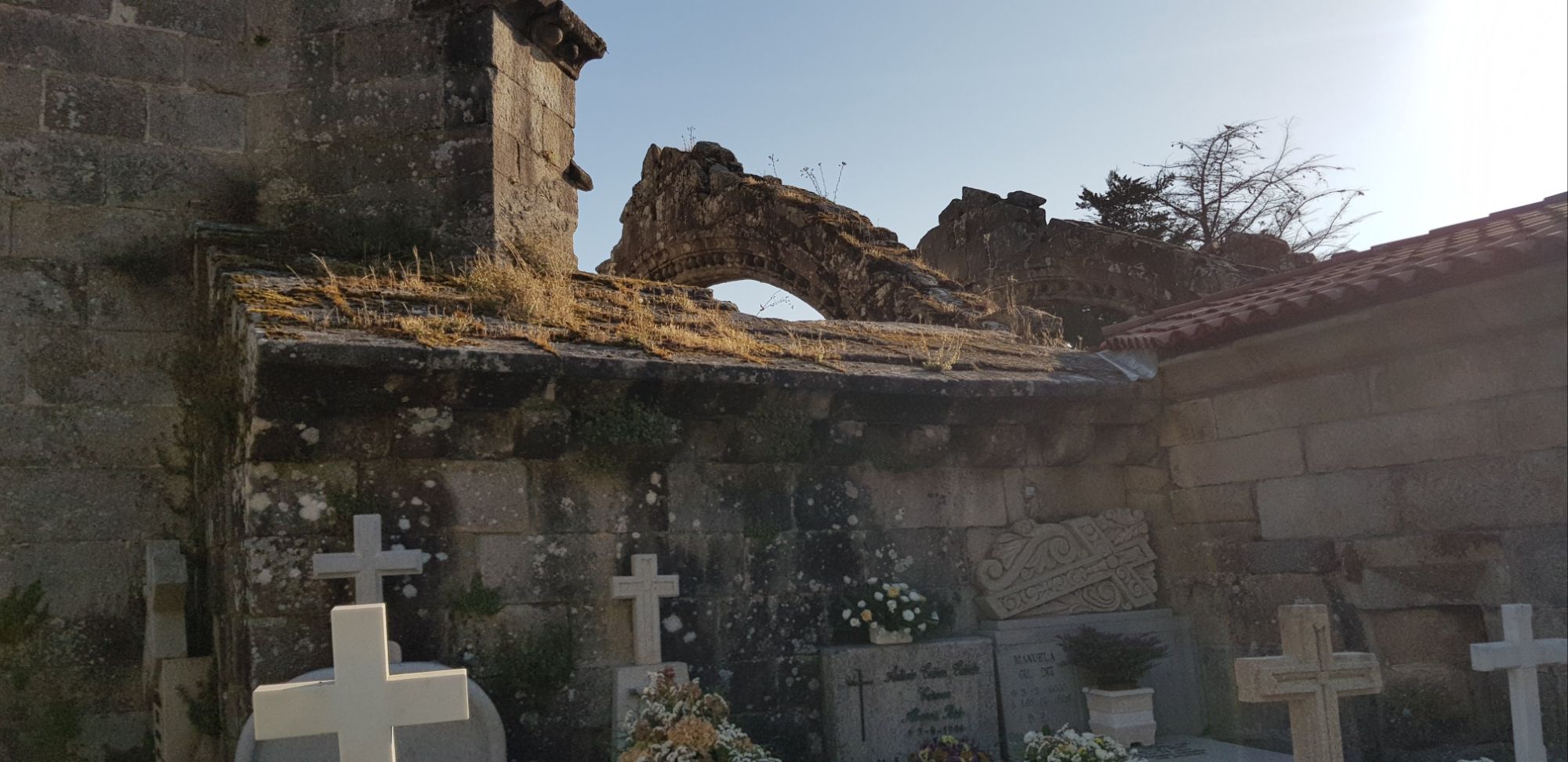 La iglesia de Santa Mariña fue construida en el siglo XV, bajo el patrocinio de la familia Soutomaior. Con el paso de los siglos, su deterioro la convirtió en un templo en ruinas, hasta que se decidió transformar el espacio en cementerio. Desde entonces, las lápidas conviven con las arcadas góticas, creando uno de los lugares más singulares de Galicia.