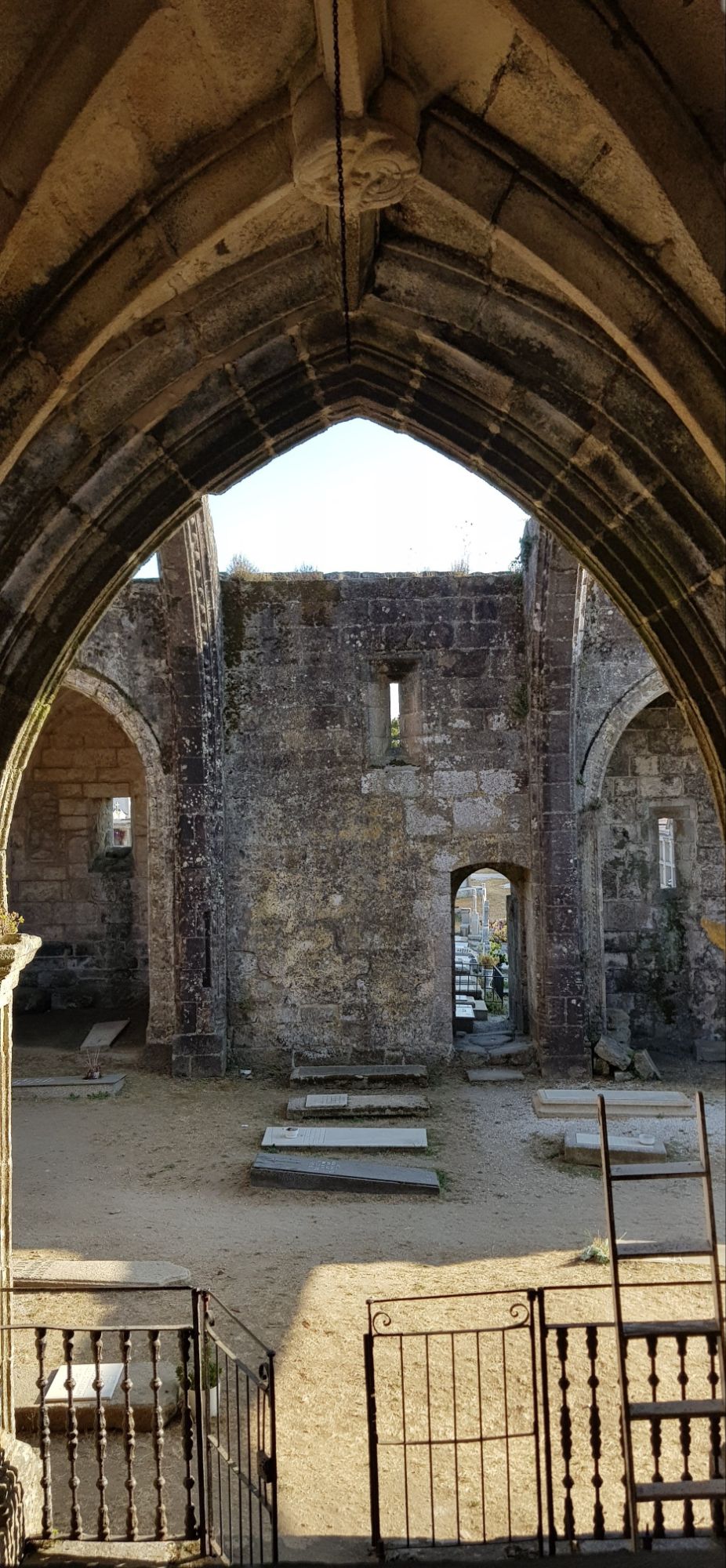 El cementerio se despliega entre los restos del templo, y uno no puede evitar pensar que aquí la muerte no es fin, sino continuidad. Las tumbas se mezclan con los arcos apuntados, como si el recuerdo de los que ya no están encontrara cobijo en un santuario abierto al cielo.