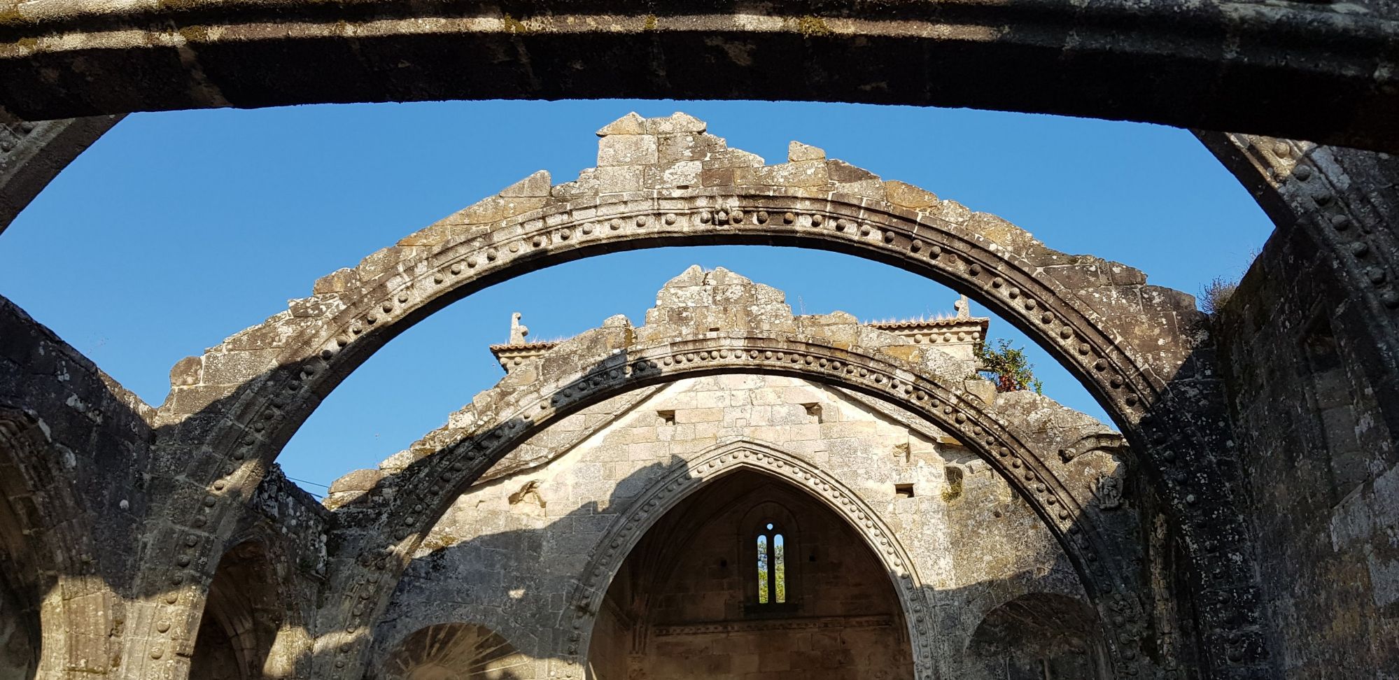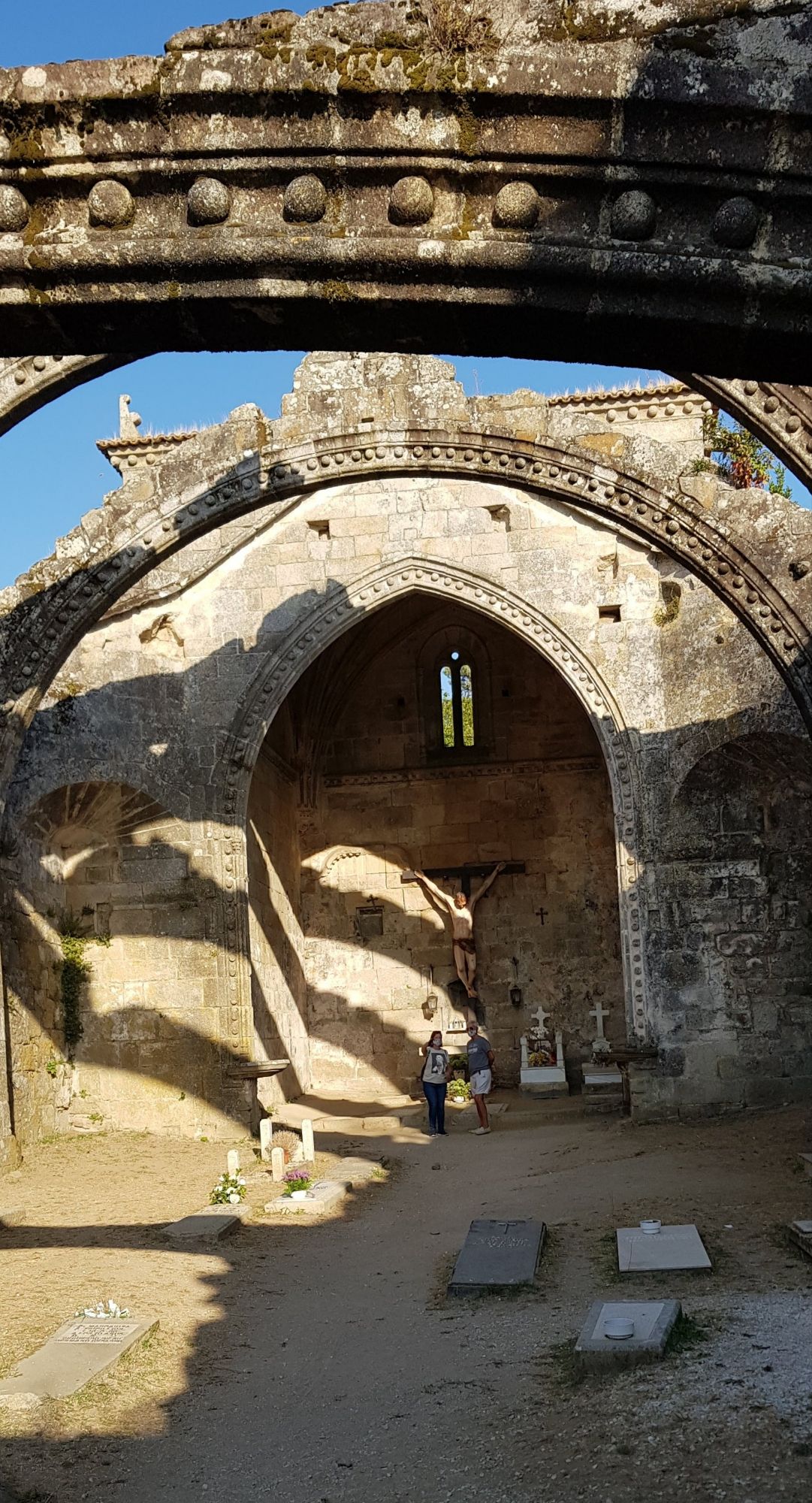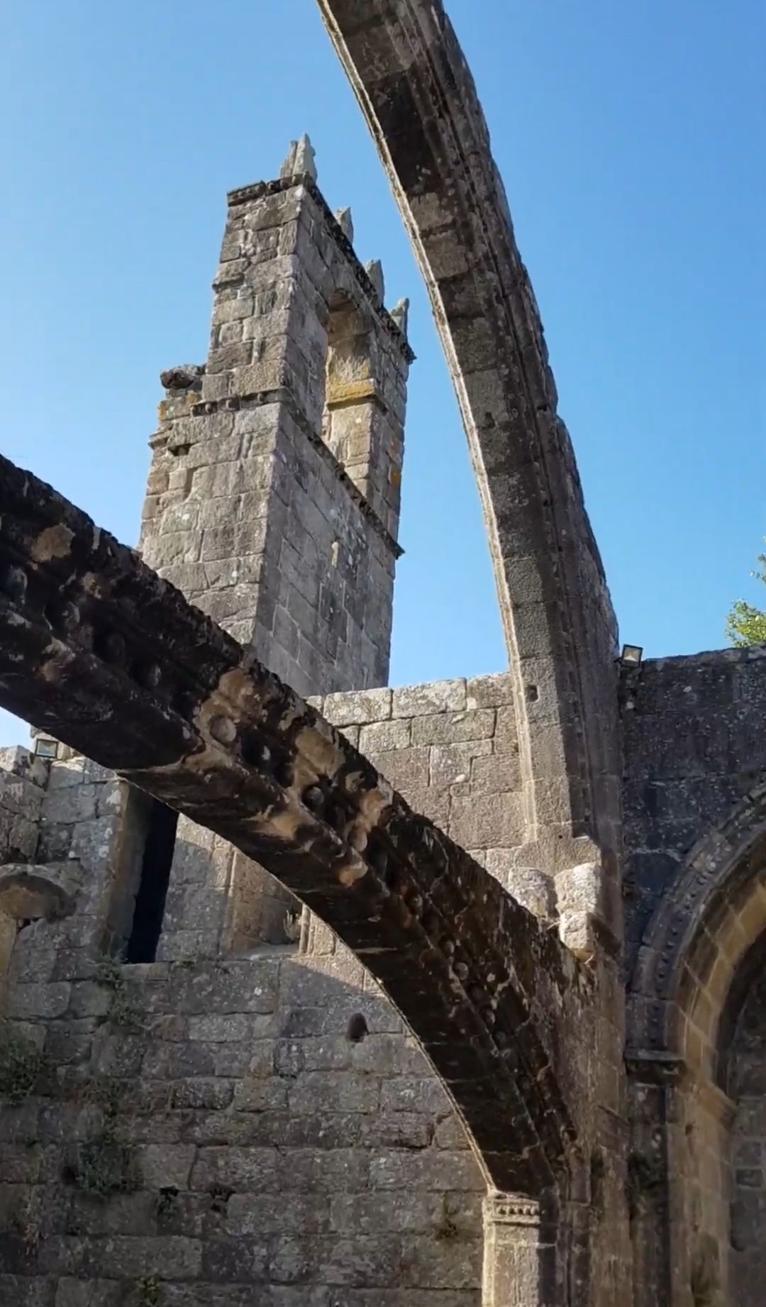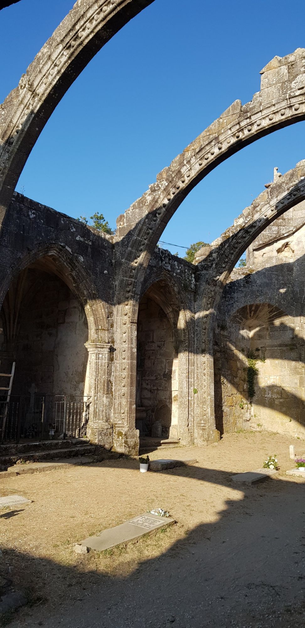 Al llegar a Santa Mariña, lo primero que sorprende es el diálogo entre piedra y naturaleza. La iglesia gótica, hoy convertida en ruina, parece más viva que nunca, los muros derruidos se alzan como testigos del tiempo, y entre ellos crecen hierbas y líquenes que suavizan la dureza de la piedra.