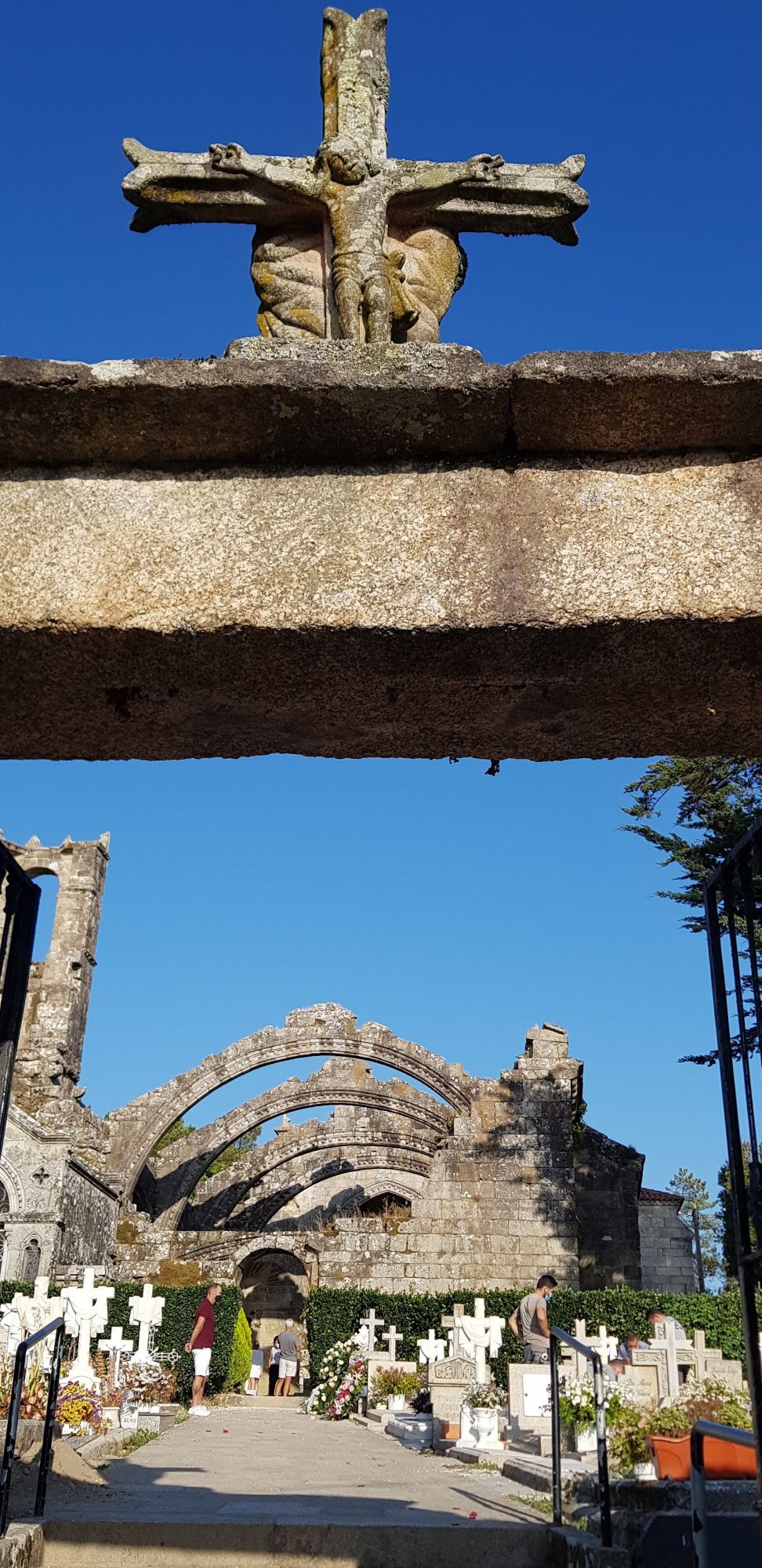 Necroturismo o turismo en los cementerios. Hay quienes piensan que los cementerios son lugares oscuros, espacios para el silencio impuesto o la tristeza. Para mí, en cambio, siempre han sido todo lo contrario, refugios de calma. Me gusta visitarlos porque en ellos el tiempo se detiene. No hay prisas, no hay ruido, solo el murmullo del viento entre las piedras y el lenguaje secreto de las flores frescas o marchitas. Entre lápidas y cruces encuentro una serenidad difícil de hallar en otros rincones del mundo. Caminar por un cementerio es, en cierto modo, un viaje íntimo: un recordatorio de lo frágiles que somos y, a la vez, de lo infinito que resulta el recuerdo. No los visito con tristeza, sino con gratitud: allí, entre muros gastados por la historia, me siento acompañada por una paz serena, como si el alma también encontrara un banco donde descansar. Por eso, cuando viajo, me gusta acercarme a estos lugares. Porque cada cementerio habla de la vida tanto como de la muerte; porque en ellos se custodian historias, memorias y silencios que también forman parte de la identidad de un pueblo. Y entre todos, hay uno que guarda una melancolía luminosa imposible de olvidar: las Ruinas de Santa Mariña de Dozo, en Cambados, quizás el cementerio más hermoso y poético que haya visto nunca.