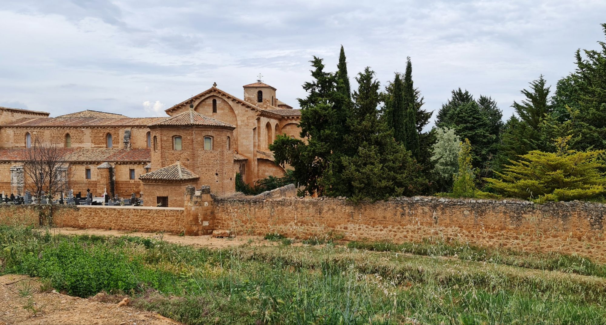 A pocos metros del monasterio, las huertas —que dieron nombre al lugar— siguen cultivándose como hace siglos, recordando que los monjes fueron pioneros en el arte de trabajar la tierra y el agua. El paisaje, con su horizonte dorado y el murmullo del Jalón, completa la escena de serenidad.