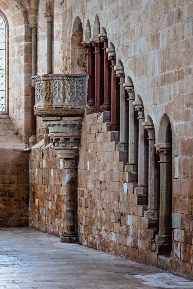El monasterio es un espectáculo de proporción y equilibrio. Su iglesia abacial, de planta latina, conserva la pureza del estilo cisterciense: piedra desnuda, luz tamizada y una sobriedad que conmueve.