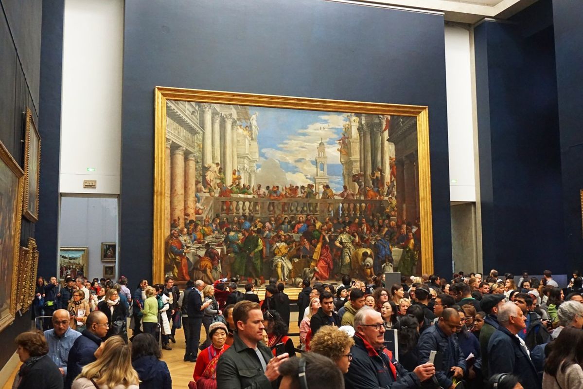 Me quedé frente a Las Bodas de Caná. Y pasé 10 minutos ahí. Viendo detalles: los 132 personajes, los músicos (uno de ellos es supuestamente Veronese mismo), la arquitectura veneciana de fondo…