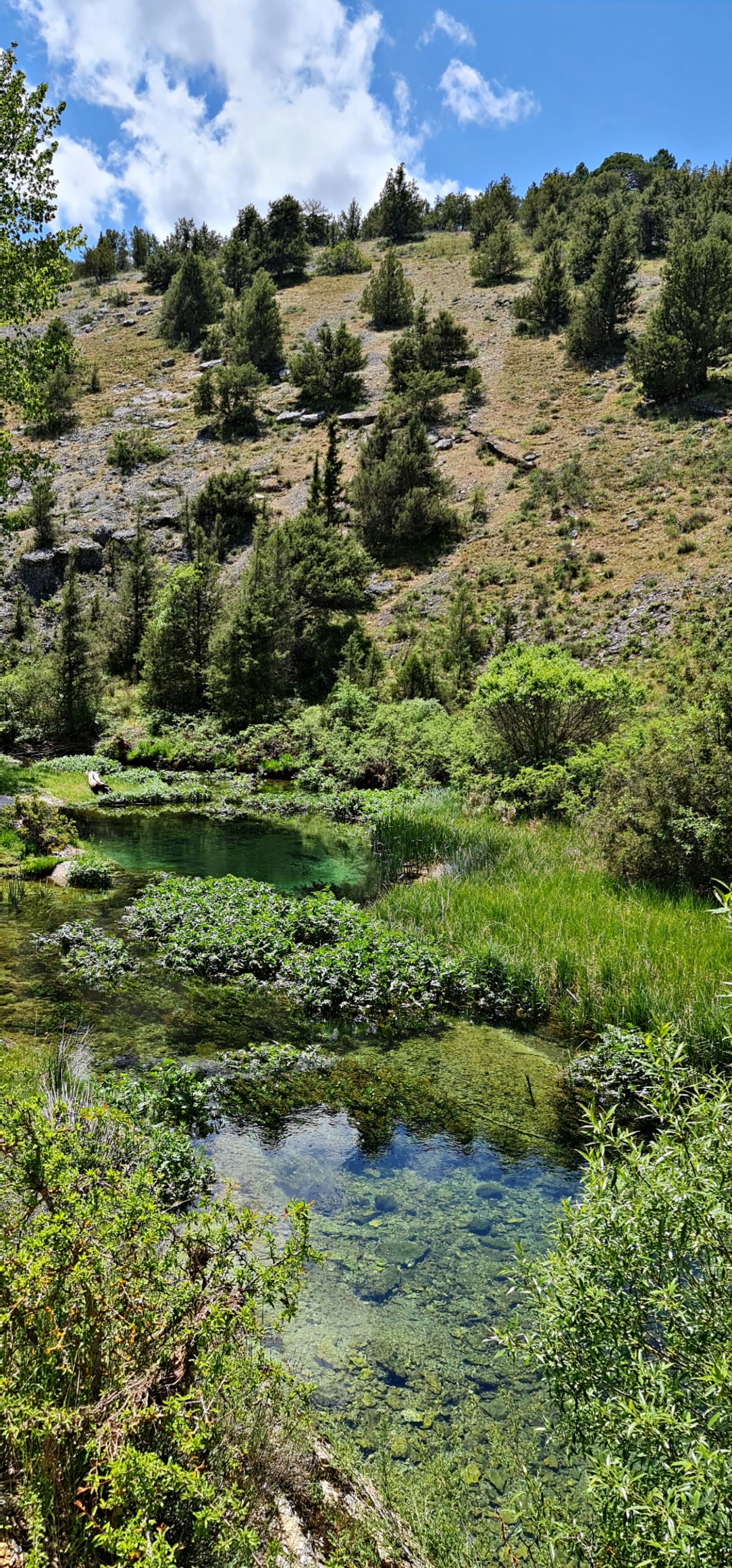 Y entonces, al final de la senda, aparece ella: la Fuentona. Un ojo de mar en medio de Soria, un espejo de aguas tan claras y profundas que parecen no pertenecer a este mundo. El color es hipnótico, un verde azulado que invita, que seduce, que atrapa.