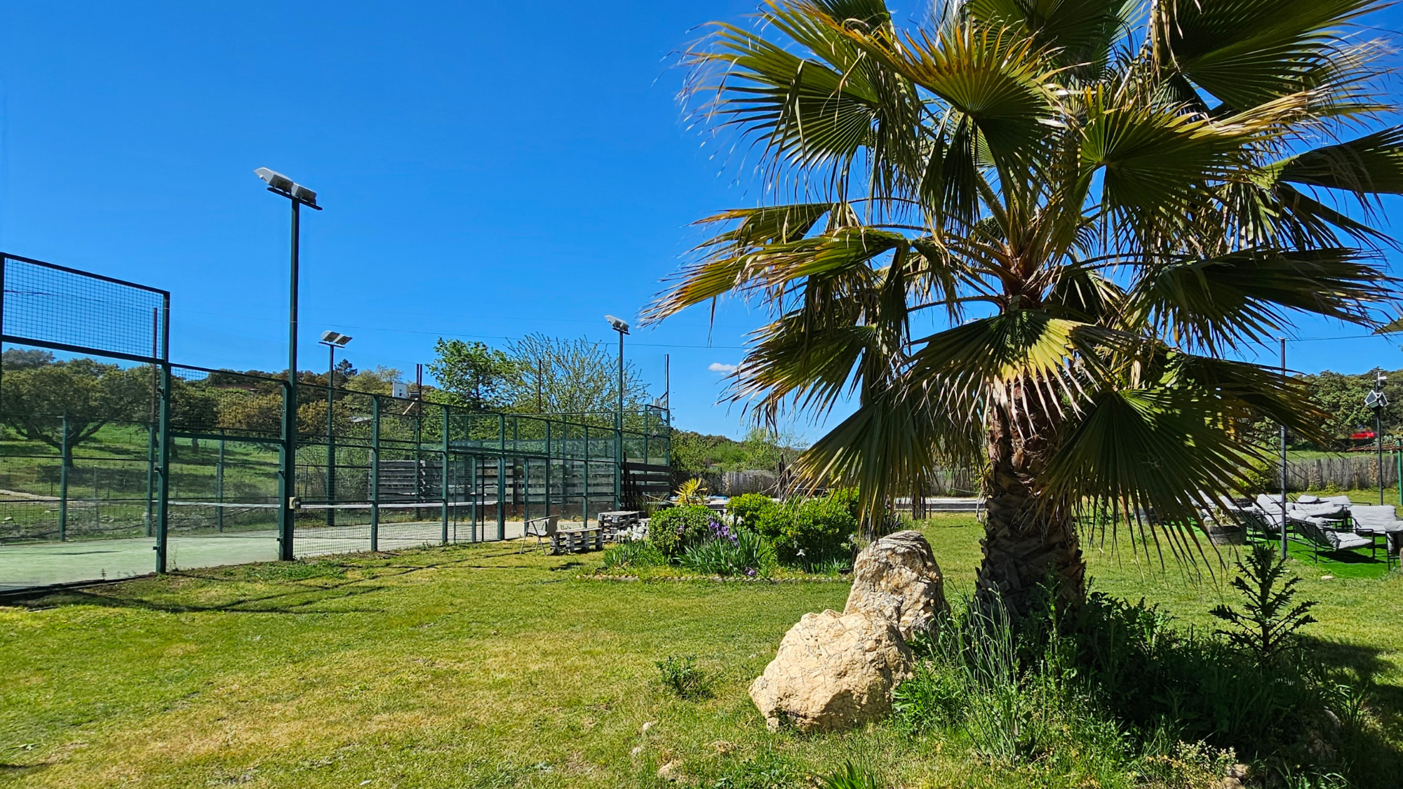 Las instalaciones acompañan sin imponerse: piscina, pistas de pádel, zonas de descanso… todo está ahí, disponible, pero sin romper esa sensación de tranquilidad constante.
