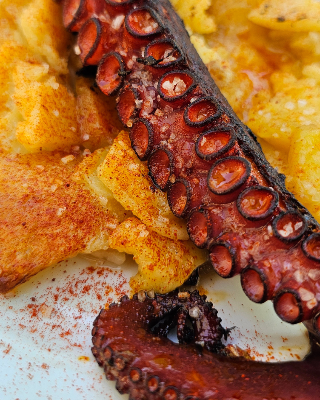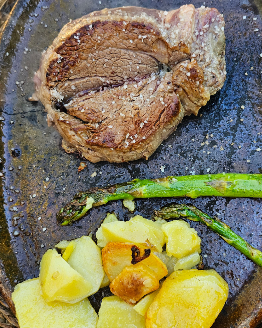 Y luego está la parte gastronómica, que sorprende especialmente. La brasa es protagonista, sí, pero no solo en carnes. Resulta curioso y muy acertado poder disfrutar también de pescado de gran calidad en pleno interior extremeño. Comer aquí no es solo alimentarse, es alargar la experiencia del lugar.