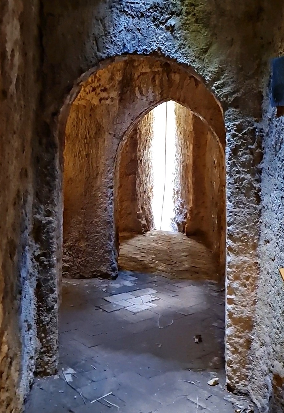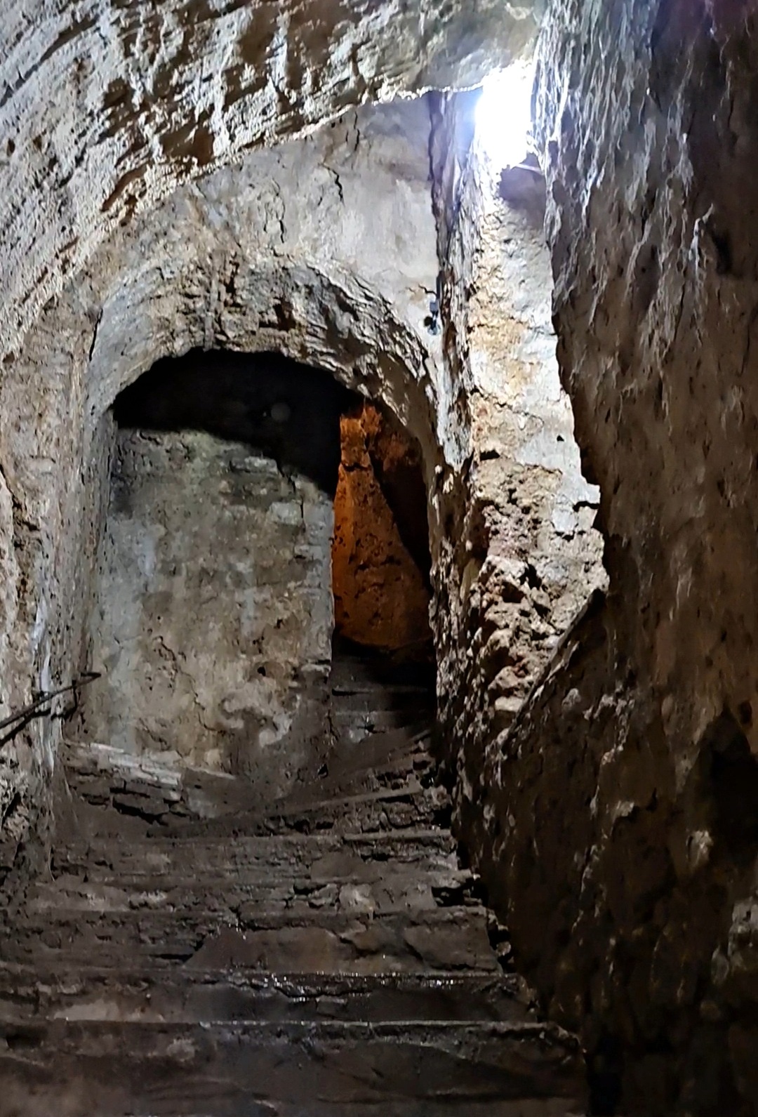 A medida que se avanza por los escalones de piedra, la luz natural comienza a filtrarse de manera distinta y el sonido del agua se convierte en un elemento constante. No es difícil imaginar el esfuerzo que suponía recorrer este camino diariamente, transportando agua y sosteniendo la supervivencia de toda una ciudad que dependía de este acceso oculto.