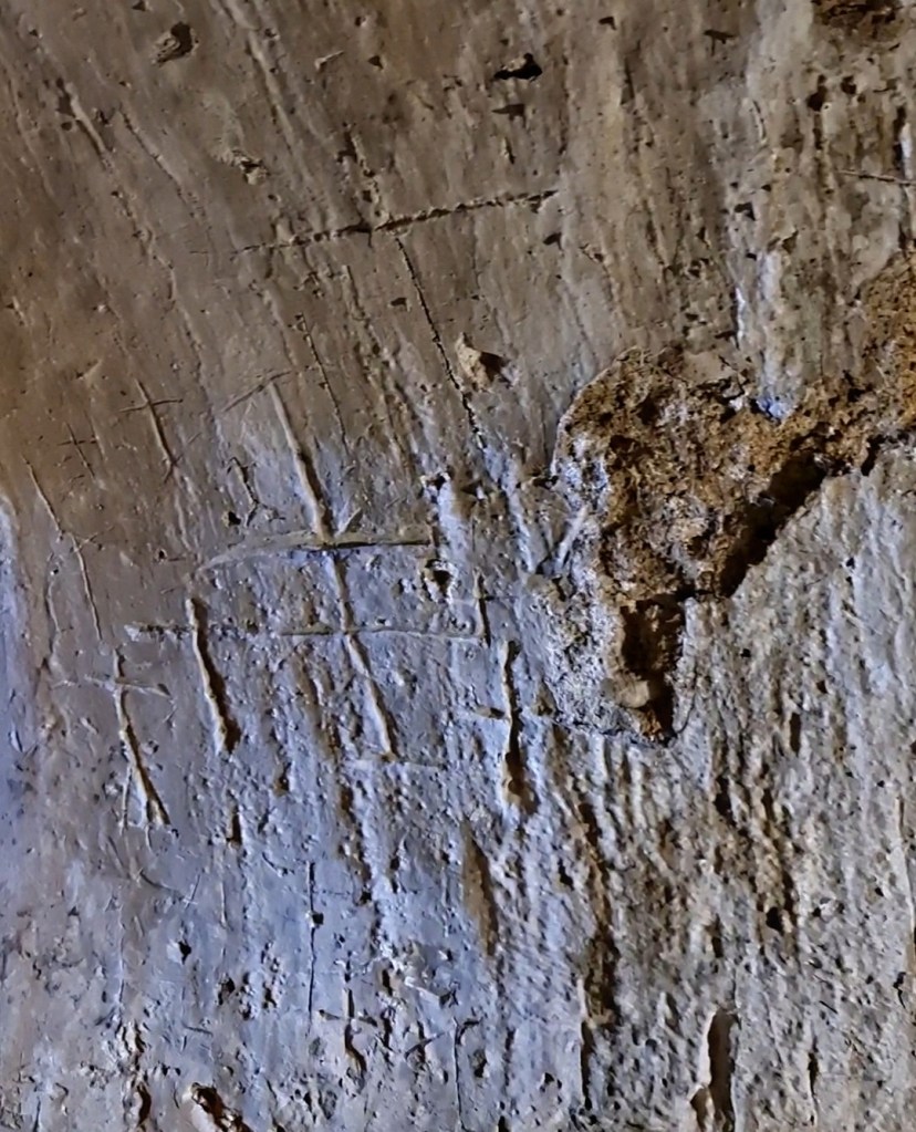 En el siglo XVII se descubren en sus paredes inscripciones de cruces y el nombre IHS (Jesucristo).