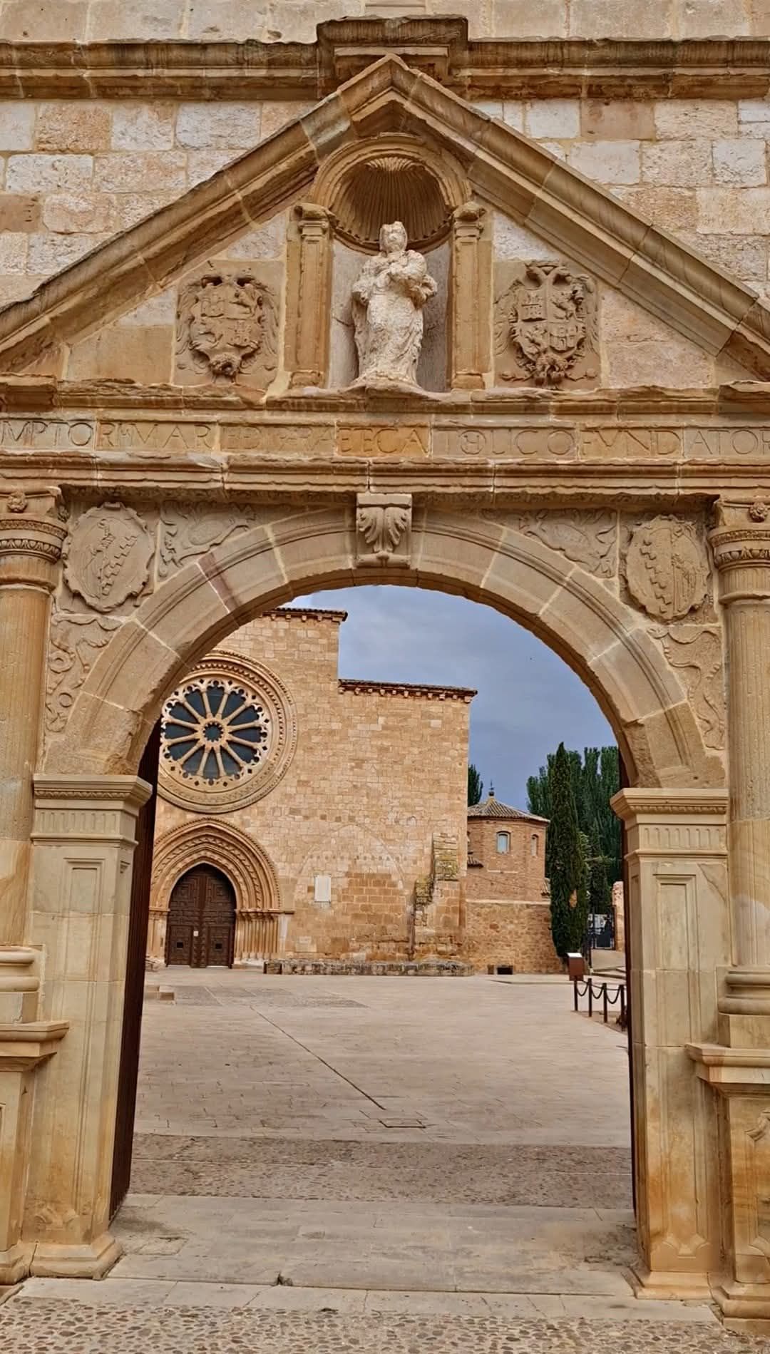 De camino hacia el límite con Aragón, la carretera abre una perspectiva imprevista: muros dorados por el sol de Castilla, una torre, una silueta monumental que surge de la llanura. El Monasterio de Santa María de Huerta es uno de los monasterios cistercienses más importantes y antiguos de España, fundado en el siglo XII. Actualmente habitado por monjes bernardos. Su refectorio gótico es considerado uno de los más bellos de Europa. La visita es guiada y tiene precio simbólico.